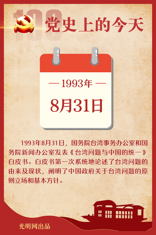 重要论述 1946年8月31日 周恩来致电中共中央并叶剑英、李克农。电报指出:美蒋在三个问题上已取得一致意见,即不承认全国内战,不承认调解失败,不愿撤兵(即美军)。现时斗争已临最后一幕,中心对美,只要使马歇尔、司徒雷登不论从军事上政治上都已无话可说,则一切责任自明,美国骗局再也继续不了。次日,毛泽东以中央名义复电周恩来并告叶剑英表示:同意你的估计及彻底揭露美蒋阴谋的方针,望坚决执行;目前只有这一方针才能与解放区胜利的自卫战争相配合,彻底击破反动派的进攻。 1971年8月31日 周恩来起草四届人大《政府工作报告》提纲,在第二部分写了“农业、工业、国防和科技的现代化”的目标,并在“四五”计划的设想中提出:要求一个适应战备的合理布局,一个稳固的农业基础,一个比较强大的工业,一个比较发达的交通网,一个城乡交通、内外交流的商业网和一个比较先进的科学技术和科学理论。 2001年8月31日 江泽民在国防大学军队高级干部理论研讨班上的讲话中强调,要科学对待马克思主义,推进理论创新。他指出:注重理论创新,是党的事业前进的重要保证。当今世界和我们所处的时代,同过去相比发生了很多深刻变化。无论从国际还是从国内看,我们都面临着许多新情况新问题,必须从理论上、实践上作出回答并加以解决,否则我们就不能更好地前进。我们必须与时俱进,继续丰富和发展马克思主义。如果因循守旧、停滞不前,我们就会落伍,我们党就有丧失先进性和领导资格的危险。七一讲话,贯穿了两个基本要求。一是必须坚持马克思主义的立场、观点、方法,坚持马克思主义的基本原理。这一点,要坚定不移,不能含糊。二是一定要贯彻解放思想、实事求是的思想路线,坚持勇于追求真理和探索真理的革命精神。这一点,也要坚定不移,不能含糊。我认为,这两个“坚定不移”、两个“不能含糊”,始终是检验我们是不是真正的马克思主义者的试金石。 他阐述坚持解放思想、实事求是的思想路线指出:解放思想、实事求是,首先要解决正确对待马克思主义的问题。我们对马克思主义的基本原理,任何时候都要坚持。但是,坚持马克思主义,绝不能采取教条主义、本本主义的态度,而应该采取实事求是、与时俱进的科学态度,坚持一切从发展变化着的实际出发,把马克思主义看作是不断随着实践的发展而发展的科学。实践没有止境,解放思想也没有止境。我们要突破前人,后人也必然要突破我们。这是社会前进的基本规律。用发展的观点对待马克思主义,在坚持中发展、在发展中坚持,这就是按规律办事,也是对待马克思主义唯一正确的态度。 他阐述以实际问题为中心研究马克思主义的方法指出:确立以实际问题为中心研究马克思主义的方法,是我们党一贯倡导的科学方法论。看我们是否真正坚持了马克思主义,关键看是否能运用它来解决中国面临的实际问题,推进党的事业发展。坚持马克思主义,要在解决实际问题的进程中来落实,要用实践的效果来检验。七一讲话中所回答的一些重大理论和实际问题,都是实践的发展已迫切要求解答的。不解答这些问题,就会影响改革开放和现代化建设的进程,也会影响党的建设发展。这篇讲话的主要部分以《科学对待马克思主义》为题,收入《江泽民文选》第三卷。 2020年8月31日 中共中央政治局召开会议,审议《黄河流域生态保护和高质量发展规划纲要》和《关于十九届中央第五轮巡视情况的综合报告》。习近平主持会议。会议指出,黄河是中华民族的母亲河,要把黄河流域生态保护和高质量发展作为事关中华民族伟大复兴的千秋大计,贯彻新发展理念,遵循自然规律和客观规律,统筹推进山水林田湖草沙综合治理、系统治理、源头治理,改善黄河流域生态环境,优化水资源配置,促进全流域高质量发展,改善人民群众生活,保护传承弘扬黄河文化,让黄河成为造福人民的幸福河。会议强调,中央和国家机关是贯彻落实党中央决策部署的“最初一公里”,要深入学习贯彻习近平新时代中国特色社会主义思想,在学懂弄通做实上下功夫,在结合实际创造性贯彻落实上下功夫,自觉运用党的创新理论武装头脑、指导实践、推动工作,主动适应新时代新形势新要求,深刻认识党和国家赋予的职能职责,胸怀“两个大局”,强化使命意识和政治担当,以履职尽责的实际行动做到“两个维护”。要带头增强改革的政治自觉和行动自觉,认真落实全面深化改革各项决策部署,不断巩固深化机构改革成果,做到系统集成、协同高效,扎实推进国家治理体系和治理能力现代化建设。要坚决落实全面从严治党主体责任和监督责任,层层传导压力,把“严”的主基调长期坚持下去,建立健全权力监督制约机制,持续整治“四风”特别是形式主义、官僚主义问题。要认真贯彻落实新时代党的组织路线,加强领导班子建设、干部人才队伍建设和基层党组织建设,把中央和国家机关建设成为讲政治、守纪律、负责任、有效率的模范机关。 党史回眸 1955年 8月31日 国务院发布《关于国家机关工作人员全部实行工资制和改行货币工资制的命令》,对国家机关工作人员生活待遇制度进行重大改革。 1993年 8月31日 国务院台湾事务办公室和国务院新闻办公室发表《台湾问题与中国的统一》白皮书。白皮书第一次系统地论述了台湾问题的由来及现状,阐明
