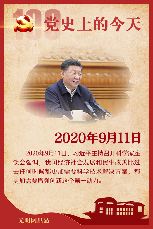 重要论述 1947年9月11日 关于在黄河、淮河、运河、平汉之间创造根据地问题,毛泽东为中共中央起草致陈毅、粟裕电。电报指出:在目前几个月内,西兵团人员补充主要靠俘虏,应采即俘即补方针,弹药补充主要靠取之于敌。应注意打有准备有把握之仗,同时严整军纪,争取群众,你们就一定能完成在黄河、淮河、运河、平汉之间创造巩固根据地,协助刘邓、陈谢创造鄂豫皖与鄂豫陕两大根据地,协助饶漱石、黎玉、谭震林保卫山东根据地,协助苏中、苏北恢复根据地之伟大任务。你们处在上述四大根据地之中间地带,你们的胜利有重大战略意义。这封电报收入《毛泽东文集》第四卷。 1951年9月11日 朱德在海军第一次政治工作会议上讲话,强调建设海军、保卫海防的重要性。讲话指出:中国过去不是没有海军,但却没有真正的海防。今天我们保卫国防的第一项重大任务就是防守海岸线,保卫领海。这个任务是艰巨的,需要海军的指挥员和战斗员一致努力,也需要海军同陆军、空军相互配合,共同来完成。这篇讲话收入《朱德选集》。 2015年9月11日 中共中央政治局就践行“三严三实”进行第二十六次集体学习。习近平在主持学习时强调,党中央在部署这次专题教育时明确提出要以上率下,中央政治局这次集体学习以“三严三实”为题,就是落实这一要求的行动。中央政治局每位同志都要以身作则,为全党做好示范。“三严三实”是我们天天要面对的要求,大家要时时铭记、事事坚持、处处上心,随时准备坚持真理、随时准备修正错误,凡是有利于党和人民事业的,就坚决干、加油干、一刻不停歇地干;凡是不利于党和人民事业的,就坚决改、彻底改、一刻不耽误地改。 他强调,践行“三严三实”,要立根固本,挺起精神脊梁;要落细落小,注重细节小事;要修枝剪叶,自觉改造提高;要从谏如流,自觉接受监督。我们共产党人的根本,就是对马克思主义的信仰,对共产主义和社会主义的信念,对党和人民的忠诚。立根固本,就是要坚定这份信仰、坚定这份信念、坚定这份忠诚,只有在立根固本上下足了功夫,才会有强大的免疫力和抵抗力。修身、用权、律己,谋事、创业、做人,贯穿领导干部工作生活方方面面,严和实是一件一件事情、一点一点修为积累起来的,必须落细落小,多积尺寸之功,经常防微杜渐。每个同志都有改造自己、提高自己的职责,打扫思想灰尘、祛除不良习气、纠正错误言行永无止境,永远都是进行时。领导干部践行“三严三实”,靠自身努力,也靠党和人民监督。我们党有严密的组织性和纪律性,党的根本宗旨是全心全意为人民服务,接受组织和人民监督天经地义。要总结经验,健全体制机制,使各种监督更加规范、更加有力、更加有效。 他指出,所有党员、干部都要按照“三严三实”要求鞭策自己。在引领社会风尚上,各级领导干部要当好旗帜和标杆,全体党员要发挥先锋模范作用。中国人历来崇尚气节、崇尚严谨、崇尚务实,讲良知、守信用,严和实是中华民族传统美德的基本内容,是传承民族品性、倡导社会新风、培育和践行社会主义核心价值观的重要内容。要根据不同人群的特点、通过形式多样的活动,在全社会弘扬严和实的精神。 2020年9月11日 习近平主持召开科学家座谈会强调,我国经济社会发展和民生改善比过去任何时候都更加需要科学技术解决方案,都更加需要增强创新这个第一动力。我国广大科学家和科技工作者有信心、有意志、有能力登上科学高峰。希望广大科学家和科技工作者肩负起历史责任,坚持面向世界科技前沿、面向经济主战场、面向国家重大需求、面向人民生命健康,不断向科学技术广度和深度进军。 他强调,我国拥有数量众多的科技工作者、规模庞大的研发投入,关键是要改善科技创新生态,激发创新创造活力,给广大科学家和科技工作者搭建施展才华的舞台,让科技创新成果源源不断涌现出来。要坚持需求导向和问题导向,对能够快速突破、及时解决问题的技术,要抓紧推进;对属于战略性、需要久久为功的技术,要提前部署。要发挥我国社会主义制度能够集中力量办大事的优势,整合优化科技资源配置,狠抓创新体系建设,进行优化组合,组建一批国家实验室,形成我国实验室体系,发挥高校在科研中的重要作用,推动重要领域关键核心技术攻关。要持之以恒加强基础研究,明确我国基础研究领域方向和发展目标,加大基础研究投入,在财政、金融、税收等方面给予必要政策支持,创造有利于基础研究的良好科研生态,建立健全科学评价体系、激励机制,持续不断坚持下去。要加强创新人才教育培养,把教育摆在更加重要位置,全面提高教育质量,加强数学、物理、化学、生物等基础学科建设,鼓励具备条件的高校积极设置基础研究、交叉学科相关学科专业,加强基础学科本科生培养,注重培养学生创新意识和创新能力。要依靠改革激发科技创新活力,通过深化科技体制改革把巨大创新潜能有效释放出来,坚决破除“唯论文、唯职称、唯学历、唯奖项”。要加强国际科技合作,更加主动地融入全球创新网络,在开放合作中提升自身科技创新能力。 他指出,科学成就离不开精神支撑。科学家精神是科技工作者在长期科学实践中积累的宝贵精神财富。希望广大科技工作者不忘初心、牢记使命,秉持国家利益和人民利益至上,继承和发扬老一辈科学