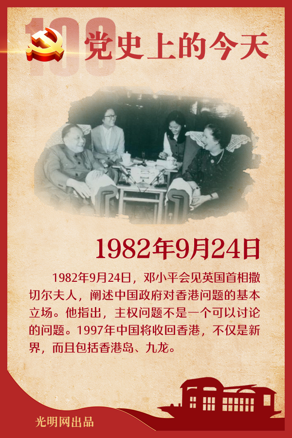 重要论述 1939年9月24日 毛泽东会见再次访问延安的美国记者斯诺,回答他提出的问题。谈到中国民主革命阶段性问题,他指出:我们永远是社会革命论者,永远不是改良主义者。中国革命,有两篇文章,上篇和下篇。无产阶级同资产阶级一道,进行民族民主革命,这是文章的上篇,我们现在正在做这一篇文章,并且一定要做好这一篇文章。但是,文章还有它的下篇,就是无产阶级领导农民,进行社会主义革命。这一篇文章,我们也是一定要做的,并且也一定要做好的。目前是民族民主革命,发展到一定的阶段,就会转变为社会主义革命。这种可能性是会要变为现实性的。这篇谈话节编收入《毛泽东文集》第二卷。 1982年9月24日 邓小平会见英国首相撒切尔夫人时阐述中国政府对香港问题的基本立场指出:主权问题不是一个可以讨论的问题。中国在这个问题上没有回旋的余地。一九九七年中国将收回香港,要收回的不仅是新界,而且包括香港岛、九龙。中国和英国就是在这个前提下来进行谈判,商讨解决香港问题的方式和办法。 他在撒切尔夫人提出有人说一旦中国宣布一九九七年要收回香港,香港就有可能发生波动时指出:小波动不可避免,如果中英两国抱着合作的态度来解决这个问题,就能避免大的波动。中国政府在做出这个决策的时候,各种可能都估计到了。如果在十五年的过渡时期内香港发生严重的波动,中国政府将被迫不得不对收回香港的时间和方式另作考虑。如果说宣布要收回香港就会像夫人说的“带来灾难性的影响”,那我们要勇敢地面对这个灾难,做出决策。这篇谈话以《我们对香港问题的基本立场》为题,收入《邓小平文选》第三卷。 2014年9月24日 习近平在纪念孔子诞辰2565周年国际学术研讨会暨国际儒学联合会第五届会员大会上指出,正确对待不同国家和民族的文明,正确对待传统文化和现实文化,是我们必须把握好的一个重大课题。我们应该注重坚持以下原则。一是要维护世界文明多样性。我们应该维护各国各民族文明多样性,加强相互交流、相互学习、相互借鉴,而不应该相互隔膜、相互排斥、相互取代,这样世界文明之园才能生机盎然。二是要尊重各国各民族文明。本国本民族要珍惜和维护自己的思想文化,也要承认和尊重别国别民族的思想文化。不同国家、民族的思想文化各有千秋,只有姹紫嫣红之别,而无高低优劣之分。每个国家、每个民族不分强弱、不分大小,其思想文化都应该得到承认和尊重。三是要正确进行文明学习借鉴。对人类社会创造的各种文明,都应该采取学习借鉴的态度,都应该积极吸纳其中的有益成分,使人类创造的一切文明中的优秀文化基因与当代文化相适应、与现代社会相协调,把跨越时空、超越国度、富有永恒魅力、具有当代价值的优秀文化精神弘扬起来。四是要科学对待文化传统。要坚持古为今用、以古鉴今,善于把弘扬优秀传统文化和发展现实文化有机统一起来、紧密结合起来,在继承中发展,在发展中继承,坚持有鉴别的对待、有扬弃的继承,努力实现传统文化的创造性转化、创新性发展。 2019年9月24日 中共中央政治局就“新中国国家制度和法律制度的形成和发展”举行第十七次集体学习。习近平在主持学习时指出,中国特色社会主义国家制度和法律制度是在长期实践探索中形成的,是人类制度文明史上的伟大创造。建立什么样的国家制度,是近代以来中国人民面临的一个历史性课题。实践证明,我们党把马克思主义基本原理同中国具体实际结合起来,在古老的东方大国建立起保证亿万人民当家作主的新型国家制度,使中国特色社会主义制度成为具有显著优越性和强大生命力的制度,保障我国创造出经济快速发展、社会长期稳定的奇迹,也为发展中国家走向现代化提供了全新选择,为人类探索建设更好社会制度贡献了中国智慧和中国方案。 他强调,中国特色社会主义国家制度和法律制度,植根于中华民族5000多年文明史所积淀的深厚历史文化传统,吸收借鉴了人类制度文明有益成果,经过了长期实践检验。一是坚持党的领导的优势。70年来,正是因为始终在党的领导下,集中力量办大事,国家统一有效组织各项事业、开展各项工作,才能成功应对一系列重大风险挑战、克服无数艰难险阻,始终沿着正确方向稳步前进。二是保证人民当家作主的优势。我国国家制度深深植根于人民之中,能够有效体现人民意志、保障人民权益、激发人民创造力。三是坚持全面依法治国的优势。坚持依法治国,坚持法治国家、法治政府、法治社会一体建设,为解放和增强社会活力、促进社会公平正义、维护社会和谐稳定、确保党和国家长治久安发挥了重要作用。四是实行民主集中制的优势。在党的领导下,各国家机关是一个统一整体,既合理分工,又密切协作,既充分发扬民主,又有效进行集中。 党史回眸 1982年 9月24日 邓小平会见英国首相撒切尔夫人,阐述中国政府对香港问题的基本立场。他指出,主权问题不是一个可以讨论的问题。1997年中国将收回香港,不仅是新界,而且包括香港岛、九龙。 2001年 9月24日-26日 中共十五届六中全会召开。全会通过《关于加强和改进党的作风建设的决定》,提出作风建设“八个坚持、八个反对”的要求。 2014年 9月24日 习近平出席纪念孔子诞辰2565周年国际学术研讨会暨国际儒学联合会第五届会员大会,