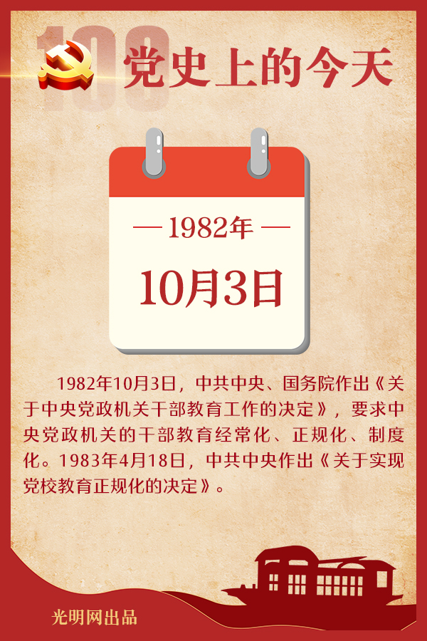 重要论述 1947年10月3日 关于西兵团的作战方针,毛泽东为中共中央军委起草致陈毅、粟裕电。电报指出:你们兵力业已展开于广大地区,现应确定一个月至两个月内,只打小仗不打大仗。各纵应划定地境,每纵几个县,从事歼灭境内小股敌军、民团、土匪、保甲,建立政权,实行土改。每县拨出一个营的架子(干部)及一个连的兵力,建立各县武装基干。各纵主力则在自己辖境内往来机动作战,包括破击铁路在内。如一个月至两个月时间不够,还可酌量延长。使敌主力置于无用之地,疲于奔命,而我则于短期内歼灭了敌之爪牙,建立了我之根据地,为不久将来集中兵力作战打下基础。此种工作看似不甚重要,实则具有伟大战略意义。四日,毛泽东又以中央军委名义致电刘邓指出:此种办法可制敌于死命。三日的电报收入《毛泽东文集》第四卷。 1978年10月3日 邓小平在会见泰国新闻代表团时,谈到农业问题指出:中国总的面貌还是落后的。解放以后,我们基本上解决了吃饭问题,但不能说农业问题已经解决了,或者比较好地解决了,更不能说已经现代化了。概括地说:农业还落后,我们还要努力。从我们的经验来看,解决农业问题比解决工业问题更难。马克思讲过,农业是基础。世界上有很多国家的经验也证明了这一点。所以,毛主席提出以农业为基础,工业为主导,首先抓农业。我们研究了世界上一些发达国家的经验,为什么它们的工业能够发展,主要是它们的农业有基础。农业解决得不好,要拖工业的后腿。特别像我们这样一个人口众多的国家,靠进口粮食解决吃饭问题不行。中国这么大,每个省的情况都不同,一个省那么大,各个地区也不同。我们搞农业,主张每个地区独立思考,一切从实际出发,因地制宜。搞农业机械化,这个地区的机械同那个地区的机械不同,有它的地区特点,不然就不适用。所以,现在讲解决农业机械化问题同过去的概念不同。 2013年10月3日 习近平在印度尼西亚国会发表演讲,全面阐述中国对印尼和东盟睦邻友好政策,提出加强中印尼全面战略伙伴关系,建设更为紧密的中国—东盟命运共同体,实现共同发展、共同繁荣。他指出,中国和东盟国家山水相连,血脉相亲。今年是中国和东盟建立战略伙伴关系10周年,中国和东盟关系正站在新的历史起点上。中方愿同印尼和其他东盟国家共同努力,使双方成为兴衰相伴、安危与共、同舟共济的好邻居、好朋友、好伙伴,携手建设更加紧密的中国—东盟命运共同体。这符合求和平、谋发展、促合作、图共赢的时代潮流,符合亚洲和世界各国人民共同利益,具有广阔发展空间和巨大发展潜力。他强调,中国将坚定不移走和平发展道路,坚定不移奉行独立自主的和平外交政策,坚定不移奉行互利共赢的开放战略。中国的发展为亚洲和世界带来的是发展机遇而不是威胁。中国愿继续同东盟、同亚洲、同世界分享经济社会发展的机遇。他最后表示,中国人民正致力于实现中华民族伟大复兴,印尼人民也在积极推进经济发展总体规划、谋求民族崛起。中国和印尼两国有16亿人口,只要两国人民手拉手、心连心,就将汇聚起世界四分之一人口的巨大力量,创造人类发展史上新的奇迹,共同谱写两国关系发展的崭新篇章,开创中国—东盟命运共同体的美好未来,共同为世界和平与发展的崇高事业作出更大贡献。 2017年10月3日 习近平致信祝贺中国人民大学建校80周年。他在贺信中指出,中国人民大学是我们党创办的第一所新型正规大学。建校以来,中国人民大学始终坚持党的领导,坚持马克思主义指导地位,坚持为党和人民事业服务,形成了鲜明办学特色,在我国人文社会科学领域独树一帜,为我国革命、建设、改革事业培养输送了一批又一批优秀人才。他强调,当前,党和国家事业正处在一个关键时期,我们对高等教育的需要比以往任何时候都更加迫切,对科学知识和卓越人才的渴求比以往任何时候都更加强烈。希望中国人民大学以建校80周年为新的起点,围绕解决好为谁培养人、培养什么样的人、怎样培养人这个根本问题,坚持立德树人,遵循教育规律,弘扬优良传统,扎根中国大地办大学,努力建设世界一流大学和一流学科,为我国高等教育事业繁荣发展,为实现“两个一百年”奋斗目标、实现中华民族伟大复兴的中国梦作出新的更大贡献。 党史回眸 1927年 10月3日 毛泽东在宁冈古城文昌宫主持召开有部队营以上干部和宁冈县党的负责人参加的前委扩大会议(即古城会议)。会议历时两天,初步总结了湘赣边界秋收起义以来的经验教训,着重讨论了在罗霄山脉中段建立落脚点和开展游击战争的问题,认为在井冈山落脚是理想的场所,对原在井冈山的袁文才、王佐两支地方武装要进行团结和改编。 1950年 10月3日凌晨 周恩来紧急约见印度驻华大使潘尼迦,就朝鲜战争问题郑重表明中国政府的立场:美国军队正企图越过三八线,扩大战争。美国军队果真如此做的话,我们不能坐视不顾,我们要管。我们主张和平解决,使朝鲜事件地方化,就是不使美军的侵略行动扩大成为世界性的事件。 1982年 10月3日 中共中央、国务院作出《关于中央党政机关干部教育工作的决定》,要求中央党政机关的干部教育经常化、正规化、制度化。1983年4月18日,中共中央作出《关于实现党校教育正规化的决定》。 2013年 10月3日 习近平在印度尼西亚国会发表题为《携手建设中国—