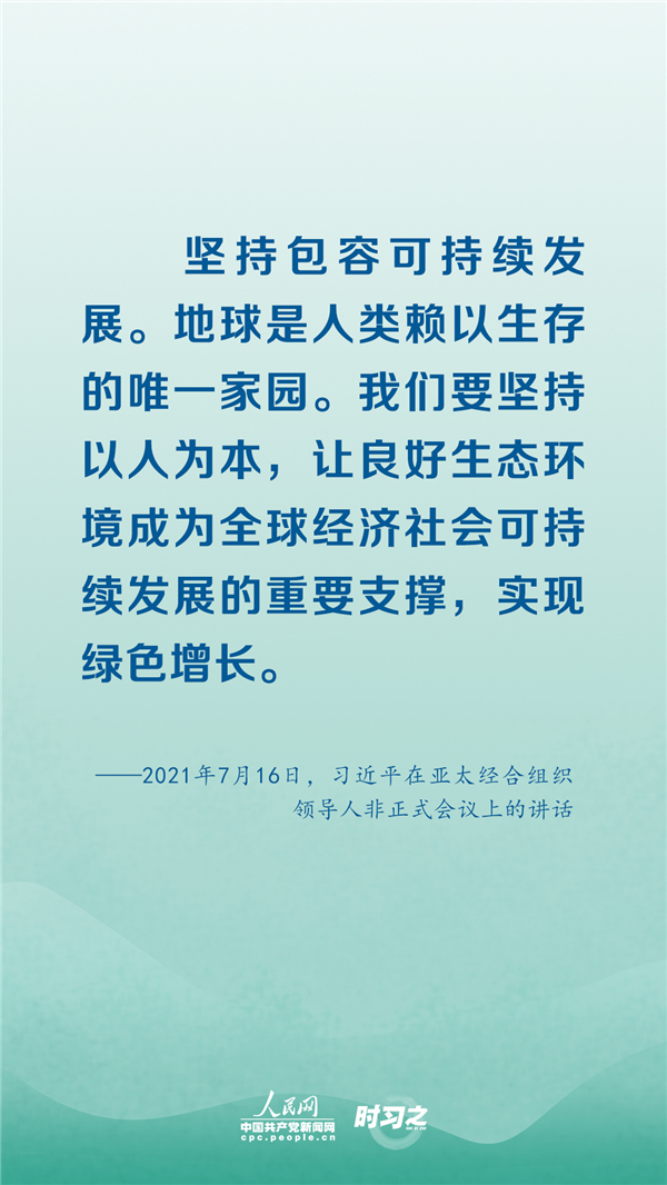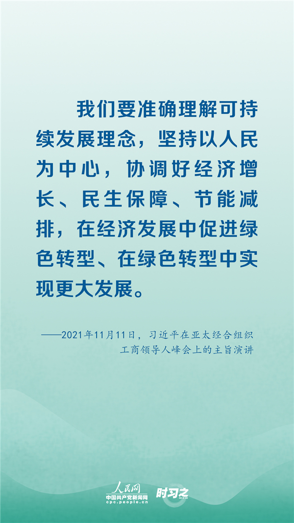 11月11日,国家主席习近平应邀在北京以视频方式向亚太经合组织工商领导人峰会发表题为《坚持可持续发展 共建亚太命运共同体》的主旨演讲。今年以来,习近平多次在国际场合阐释中国的可持续发展主张,人民网·中国共产党新闻网带您一起回顾“十四五”开局之年习近平关于可持续发展的相关论述。