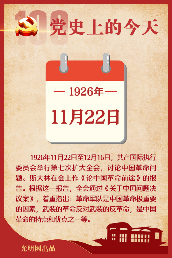 重要论述 1936年11月22日 毛泽东在中国文艺协会成立大会上发表演讲。演讲指出:我们要抗日首先就要停止内战。怎样才能停止内战呢?我们要文武两方面都来。要从文的方面去说服那些不愿停止内战者,去宣传教育全国民众团结抗日。如果文的方面说服不了那些不愿停止内战者,那我们就要用武的去迫他停止内战。你们文学家也要到前线上去鼓励战士,打败那些不愿停止内战者。发扬苏维埃的工农大众文艺,发扬民族革命战争的抗日文艺,这是你们伟大的光荣任务。这篇演讲收入《毛泽东文集》第一卷。 1985年11月22日 邓小平会见马来西亚总理马哈蒂尔时,谈到加强发展中国家合作问题指出:对付发达国家的贸易保护主义就要加强发展中国家之间的合作,这是唯一的出路。我们中国在考虑自己发展问题的时候,提出了对外开放。向谁开放?当然要对发达国家开放,要从那里得到技术、资金和市场。但是中国对外开放一个重要的内容、一个重要政策,就是对第三世界国家开放。这方面我们过去做得不够。我们发现同第三世界国家合作的领域是非常广阔的。第三世界人口最多,占世界总人口的四分之三以上。我们相互变成对方的市场,这个市场就是世界最大的市场。我们在很多方面相互帮助,相互合作,彼此都有好处。甚至在技术方面,也不能说我们全都落后,我们各有各的优势,各有各的特点。现在世界舆论说,二十一世纪是太平洋世纪。我们太平洋地区国家要加强合作。 2016年11月22日 习近平出席中拉媒体领袖峰会开幕式。他在致辞中强调,首届中拉媒体领袖峰会正式举办,是中拉媒体交往史上的一次创举,也是一大盛事。“声同则处异而相应,德合则未见而相亲”。媒体交流是中拉关系的重要组成部分。中拉媒体在继承和发展中拉人民友谊方面大有作为。他就深化中拉媒体合作提出3项主张。一要相互借力,携手提升中拉媒体影响力,向世界展示更加真实鲜活的中国和拉美,在世界和平与发展等重大问题上共同发出声音。二要坚定信念,共同助力中拉务实合作实现新发展,提升双方合作热情和信心,推广富有创新精神的合作模式。三要互学互鉴,推动中拉媒体交流合作再上新台阶。中方已经宣布将设立中拉新闻交流中心,邀请拉美部分媒体记者赴华工作学习。同时,未来5年,中方还将为拉美和加勒比国家培训500名媒体从业人员,实现双方媒体事业共同繁荣。 2019年11月22日 习近平在会见出席2019年“创新经济论坛”外方代表时指出,创新是当今时代的重大命题。世界正在经历百年未有之大变局,新一轮科技革命和产业变革迅猛发展。人类面临的共同挑战需要各国携手应对。没有一个国家可以成为独立的创新中心,或独享创新成果。创新成果应惠及全球,而不应成为埋在山洞里的宝藏。中美等国都是创新大国,中国愿意和包括美国在内的世界各国开展创新合作,更好造福两国人民和世界人民。 他强调,中国是拥有五千年文明史的大国,历史上四大发明曾经为人类文明进步作出巨大贡献。鸦片战争以来,中国沦为半殖民地半封建社会,但中国人民并没有屈服,而是奋力探索民族复兴之路。新中国成立70年来,中国发生了翻天覆地变化,其根本原因在于我们找到了一条符合中国国情、顺应时代潮流、得到人民群众拥护支持的正确道路,这就是中国特色社会主义。今天,中国人民充满高度自信,将坚定不移沿着这条道路走下去。我们提出实现中华民族伟大复兴的中国梦,但这个梦绝不是“霸权梦”。我们没有准备去取代谁,只不过是让中国恢复应有的尊严和地位。我们已经取得了辉煌成就,但我们不会在世界上颐指气使,而是继续秉持“和而不同”的传统理念,坚持走和平发展道路,致力于与世界各国开展互利合作。中国坚持改革开放,既大胆创新,又摸着石头过河,越是面临阻力,越是迎难而上,加大开放。我对中国的发展前景充满信心。 党史回眸 1926年 11月22日至12月16日 共产国际执行委员会举行第七次扩大全会,讨论中国革命问题。斯大林在会上作《论中国革命前途》的报告。根据这一报告,全会通过《关于中国问题决议案》,着重指出:帝国主义已采取分化革命阵营的新策略,大资产阶级将不可避免地脱离革命;目前,中国民族革命运动的发展重点是土地革命;中国革命的前途有可能向非资本主义即社会主义的方向发展,无产阶级应竭力争取革命的领导权;革命军队是中国革命极重要的因素,武装的革命反对武装的反革命,是中国革命的特点和优点之一。 资料来源:中共中央党史和文献研究院网站 |