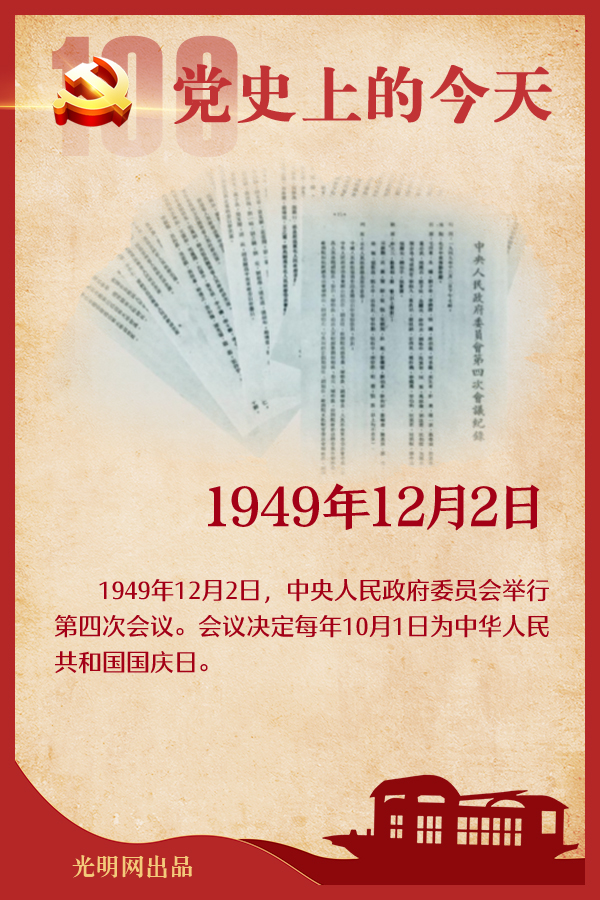 重要论述 1949年12月2日 毛泽东在中央人民政府委员会第四次会议讲话。讲话指出:国家的预算是一个重大的问题,里面反映着整个国家的政策,因为它规定政府活动的范围和方向。概算草案中关于养活所有旧军队和旧公教人员的问题,这就是政策问题。人民政府在这个问题上应该采取负责的态度,只有这样才是对人民有利的。我们的情况概括地说来就是:有困难的,有办法的,有希望的。我们的财政情况是有困难的,我们必须要向人民说明我们的困难所在,不要隐瞒这种困难。但是我们同时也必须向人民说明,我们确实有办法克服困难。我们既然有办法克服困难,我们的事业就是有希望的,我们的前途是光明的。我们的情况会一年比一年好起来,估计明年要比今年好。在三年五年的时间内,我们的经济事业可以完全恢复;在十年八年的时间内,我们的经济就可以得到巨大的发展。 1978年12月2日 针对中央工作会议上出现的新情况、新问题,邓小平在谈闭幕会上的讲话稿时提出,讲话稿的主要内容要转到谈真理标准问题、发扬民主问题、团结一致向前看的问题和经济管理体制问题上。此前,他亲笔拟出讲话提纲:“一、解放思想,开动机器。理论的重要。实践是检验真理的标准——争论的必要。实事求是,理论和实际相结合,一切从实际出发。全党全民动脑筋。二、发扬民主,加强法制。民主集中制的中心是民主,特别是近一时期。民主选举,民主管理(监督)。政治与经济的统一,目前一时期主要反对空头政治。权力下放。千方百计。自主权与国家计划的矛盾,主要从价值法则、供求关系(产品质量)来调节。三、向后看为的是向前看。不要一刀切。解决遗留问题要快,要干净利落,时间不宜长。一部分照正常生活处理。不可能都满意。要告诉党内外,迟了不利。安定团结十分重要,要大局为重。犯错误的,给机会。总结经验,改了就好。四、克服官僚主义、人浮于事。一批企业做出示范。多了人怎么办,用经济方法管理经济,扩大管理人员的权力。党委要善于领导,机构要很小。干什么?学会管理,选用人才,简化手续,改革制度(规章)。五、允许一部分先好起来。这是一个大政策。干得好的要有物质鼓励。国内市场很重要。六、加强责任制,搞几定。从引进项目开始,请点专家。七、新的问题。人员考核的标准。多出人员的安置(开辟新的行业)。” 2016年12月2日至3日 中央军委军队规模结构和力量编成改革工作会议举行。习近平在会议上发表讲话强调,军队规模结构和力量编成改革是深化国防和军队改革的重要组成部分,是推进我军组织形态现代化、构建中国特色现代军事力量体系的关键一步,是实现党在新形势下的强军目标、建设世界一流军队必须迈过的一道关口。全军要站在实现中国梦强军梦的战略高度,抓住机遇,一鼓作气,乘势而上,深入实施改革强军战略,把规模结构和力量编成改革推向前进,在中国特色强军之路上迈出新的更大步伐,以崭新的面貌迎接党的十九大胜利召开。 他指出,军队规模结构和力量编成改革的总体思路是,以党在新形势下的强军目标为引领,贯彻新形势下军事战略方针,坚持政治建军、改革强军、依法治军,聚焦备战打仗,着眼于维护国家主权、安全、发展利益,有效应对各战略方向和重大安全领域现实威胁,按照调整优化结构、发展新型力量、理顺重大比例关系、压减数量规模的要求,推动我军由数量规模型向质量效能型、由人力密集型向科技密集型转变,部队编成向充实、合成、多能、灵活方向发展,构建能够打赢信息化战争、有效履行使命任务的中国特色现代军事力量体系。 他强调,要把握军队规模结构和力量编成改革的战略举措。坚持问题导向,注重构建新体制下联合作战力量体系,注重以结构功能优化牵引规模调整,注重通过重点突破带动整体推进。要坚持减少数量、提高质量,优化兵力规模构成,打造精干高效的现代化常备军。要坚持体系建设、一体运用,调整力量结构布局,打造以精锐作战力量为主体的联合作战力量体系。要坚持需求牵引、创新驱动,改革作战部队编成,打造具备多种能力和广泛作战适应性的部队。 党史回眸 1949年 12月2日 中央人民政府委员会第四次会议决定发行人民胜利折实公债;分别通过省、市、县各界人民代表会议组织通则。地方各级各界人民代表会议先后由各地人民政府召开,代行人民代表大会职权,成为人民代表大会召开前的一种过渡形式。 1963年 12月2日 中共中央、国务院原则批准中央科学小组、国家科学技术委员会党组关于1963年-1972年科学技术发展规划的报告、科学技术发展规划纲要及科学技术事业规划。 2013年 12月2日 嫦娥三号发射成功并于14日在月面成功软着陆。2018年12月8日,嫦娥四号探测器成功发射,2019年1月3日实现世界首次月球背面软着陆,并开展就位探测与巡视探测。2020年11月24日,嫦娥五号探测器成功发射,并于12月17日携带月球样品安全返回着陆。 2014年 12月2日 中共中央、国务院印发《丝绸之路经济带和21世纪海上丝绸之路建设战略规划》。2015年3月28日,经国务院授权,国家发展改革委、外交部、商务部联合发布《推动共建丝绸之路经济带和21世纪海上丝绸之路的愿景与行动》。 2016年 12月2日 习近平在中央军委军队规模结构和力量编成改革工作会议上讲话强调,要推动我军由数量规模型向