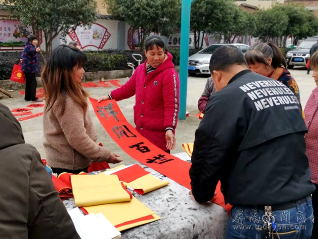 今日屏南消息 (叶董捷)墨香润侨村,送福入万家。1月20日上午,长桥镇新时代文明实践所联合镇侨联、妇联、司法所组成文艺志愿服务队伍,走进长桥镇新桥村开展“福”文化暨侨法宣传志愿文化服务活动。