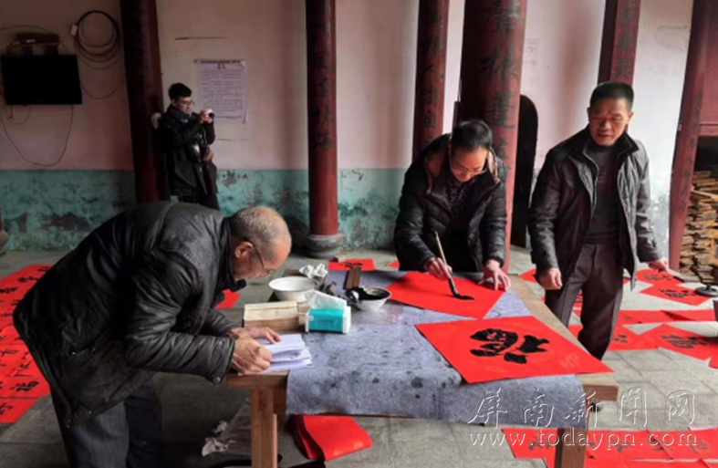 书法家写“福”。村头村邀请书法家们现场为群众写“福”、送春联,把一张张寓意吉祥的福字、一副副充满喜庆的春联,和新春的美好祝福送到村民手中。 文创团队添“福”。“人生苦短留乐趣 喜事纷纭品尝咖啡”......在厦地村,一幅幅妙趣横生的创意春联,为古村增添了新意,同时让游客朋友们感受到节日的温暖。