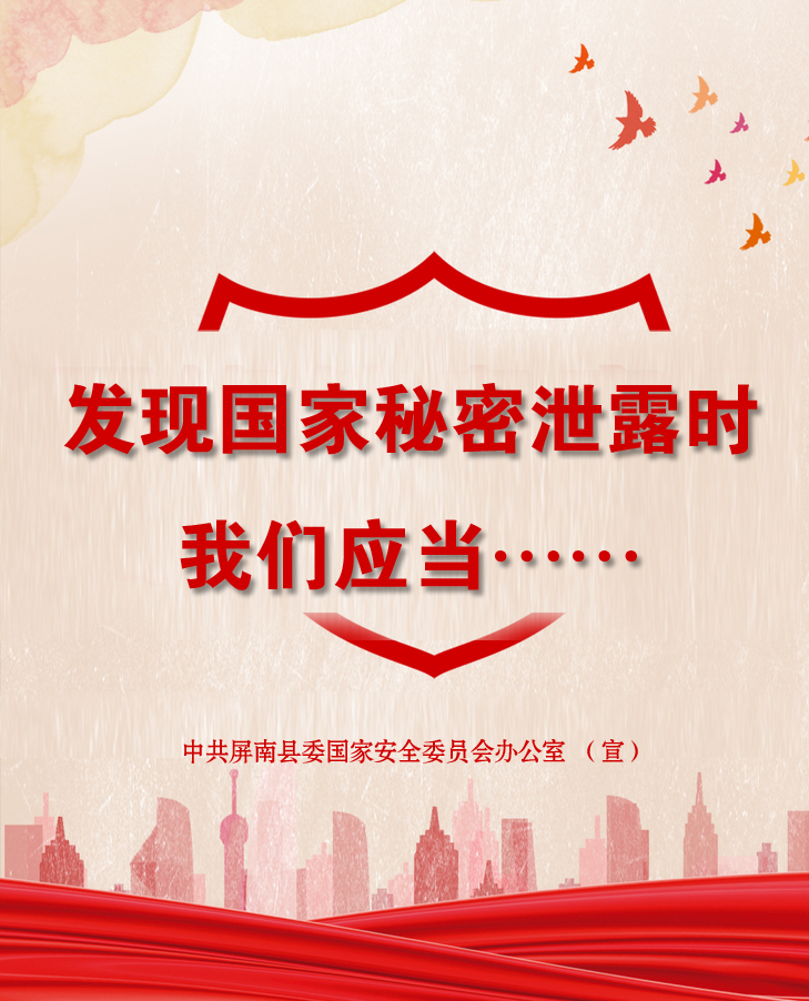 发现国家秘密已经或可能泄露时,我们应当采取哪些措施? 1.拾获属于国家秘密的文件、资料和其他物品,应当及时送交有关机关、单位或保密工作部门。 2.发现有人买卖属于国家秘密的文件、资料和其他物品,应当及时报告保密工作部门或者国家安全机关、公安机关处理。 3.发现有人盗窃、抢夺属于国家秘密的文件、资料和其他物品,有权制止,并应当立即报告。 4.发现泄露或可能泄露国家秘密的线索,应当及时向国家安全机关举报(举报电话:12339)。 增强国家安全意识,保障国家长治久安! 点击观看以下国家安全教育视频: https://haokan.baidu.com/v?pd=wisenatural&vid=3122784375450792592 |