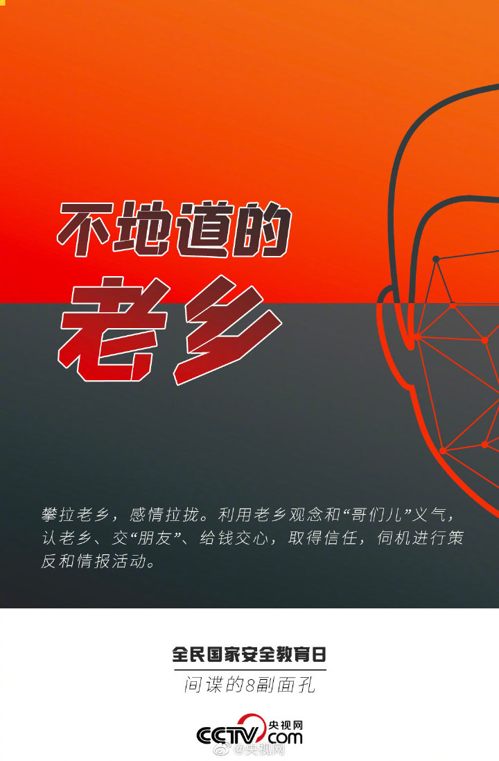 今天是第七个全民国家安全教育日 ,反奸防谍,这些间谍常用的“易容术”,你都知道吗?划重点:发现间谍行为要拨打12339举报。