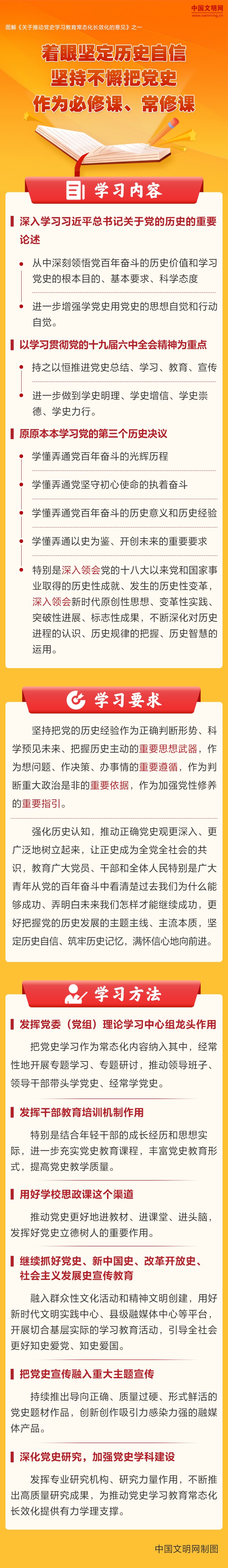 在全党开展党史学习教育,是以习近平同志为核心的党中央立足百年党史新起点、着眼开创事业发展新局面作出的一项重大战略决策。近日,中共中央办公厅印发《关于推动党史学习教育常态化长效化的意见》,要求各地区各部门结合实际认真贯彻落实。中国文明网制作推出系列图解,供大家学习参考。