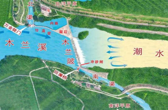 木兰溪发源于福建中部的戴云山脉,横贯莆田市中、南部,自西北向东流经仙游县、城厢区、荔城区、涵江区等地,至三江口注入兴化湾入台湾海峡,干流全长105公里,流域面积1732平方公里,是福建省“五江一溪”重要河流之一。在木兰溪距入海口25.8公里处,有一座200多米长、形如钢琴的拦河坝,名为“木兰陂”。 木兰陂俯视图。摄影:蔡昊 木兰陂始建于北宋,是我国现存最完整的古代大型水利工程之一,是中国东南沿海地区拒咸蓄淡灌溉工程的独特创造。木兰陂建成已近千年,仍然发挥着引水、蓄水、灌溉、防洪、挡潮、水运的综合功能。 明《兴化府志》兴化府郡境图中的木兰陂。供图:萧亚生 三次筑陂方告成 两岸沧海变桑田 木兰溪流域雨量充沛,水位季节变化大。由于河道弯曲、断面狭窄等因素,只要上游一下大雨,下游就水流漫滩,引发洪涝灾害。而且,木兰溪与海相连,海水因涨潮溯溪而上,潮去洪退,盐碱遍地,木兰溪两岸的南北洋只生蒲草,不长禾苗。因此,以前莆田的“莆”,其实是蒲草的“蒲”。变水害为水利,就成了当地百姓长久以来梦寐以求的愿望。 宋代郑樵《重修木兰陂记》、刘克庄《宋协应庙记》有关木兰陂的记载。供图:莆田市政协文化文史和学习委员会 北宋年间,木兰溪上的治水者前赴后继,筑坝拦水工程前后经过三次修建,历时二十年,第三次方告成功。 木兰陂三次修筑的位置图。供图:吴荔三 北宋治平元年(1064年),年仅16岁的福州长乐女子钱四娘,有感莆田人民遭受水患痛苦,倾其家资围堰筑陂。她募集民众在将军岩前垒石筑陂以挡住海潮,并开渠南行,欲引水灌溉南洋平原田地。工程历经三年完工,但由于陂址选在河道比较狭窄的地方,虽然降低了成本,然抗水流冲击能力不足,刚筑成即被洪水冲垮,钱四娘愤而投水自尽。虽然钱四娘的尝试失败了,但给后人留下了宝贵的建陂治水创想和选址经验教训,莆田老百姓至今念念不忘钱四娘。 钱四娘塑像。摄影:蔡昊 北宋熙宁元年(1068年),又一位长乐人林从世发愿要继续同乡钱四娘的未竟之志,携家产10万缗来莆田筑陂。他吸取钱四娘失败的教训,将大坝基址选在水流缓慢的下游温泉口。然而,此处虽溪流缓慢,但太靠近兴化湾,海潮汹涌。工程即将完成时,被大潮冲毁,筑陂第二次失败。 明朝周瑛编著的《兴化府志》之《重修木兰陂记》(原件现存日本内阁文库)。供图:莆田市党史和地方志研究室 第三次修陂是在王安石变法时期。政府下诏请有识之士兴建水利,于是轰轰烈烈的农田水利建设在全国展开。熙宁八年(1075年),应诏而来的闽侯人李宏携7万缗钱来莆,以续前人未竟之事。他在长乐籍高僧冯智日的协助下,总结钱、林二次筑陂的失败原因,细心勘定沿溪的地质和水情,最后选择木兰山麓为陂址。这里两山夹峙,溪面宽阔,上游的洪水暴发时,至此水势明显转缓,下游海潮涌来时,力量也大为削弱,是比较理想的陂址所在。 《兴化府莆田县志》记载三次修陂过程。供图:林春荣 木兰陂建造设计复杂,工程浩大,施工难度大。李宏和冯智日精心设计、缜密施工,还号召莆田当地三余七朱、陈林吴顾十四大户捐钱70万缗。在民众的大力支持帮助下,历经8年终于完成木兰陂的建造。 木兰蜀堰两丰碑 技术功能各千秋 木兰陂是我国宋代人工建造的水利工程代表作,不仅灌溉规模远远超越了前代,而且在工程规划、建筑、结构等方面达到了同时代的高峰,也为东南沿海灌溉工程提供了优秀的典范,对研究我国古代大型水利工程的建造技术、构筑过程、设计思想、水利文化等,具有重大学术价值和鲜活实例意义。2014年木兰陂入选首批世界灌溉工程遗产名录。 木兰陂渠首枢纽工程示意图。供图:吴荔三 木兰陂工程分为陂首枢纽工程和渠系工程两大部分。 陂首枢纽工程由拦河坝、进水闸和导流堤组成。拦河坝全长219.13米,全部采用大块体花岗岩条石砌筑,属于砌石堰闸型拦河坝。其靠北岸为滚水重力坝,南岸段为溢流堰闸,设有堰闸28孔,冲砂闸1孔;进水闸分南北两座,导流堤分南北导流堤。 渠系工程有大小沟渠数百条,总长400多公里,其中南干渠长约110公里,北干渠长约200公里,沿线建有陂门、涵洞300多处。 陂体纵剖面图。堰坝底部挖开软基,回填卵砾石,并在上方铺设花岗岩护坦。供图:莆田市水利局 将军柱结构图。供图:莆田市水利局 在冲积平原软基地带建造拦河大坝,直到今天还是世界性的难题。它的闸墩成功借鉴了泉州洛阳桥首创的“筏形基础”,主体工程基座由数万块成吨重的花岗石钩锁叠砌,在闸墩下游采用将军柱的结构,以及独具特色的闸坝结合形式,契合了水力学和土力学原理。 闸墩借鉴了泉州洛阳桥首创的“筏形基础”。摄影:敖玉龙 诚如明朝莆田进士林俊赞誉“木兰蜀堰两丰碑”,木兰陂在水利史上可与四川都江堰水利工程相媲美,但二者在引水灌溉、排沙、蓄水等方面也存在明显区别。 引水灌溉方面,都江堰采用“鱼嘴”的分水工程,把岷江分成内外二江,分别用于灌溉和排洪。而木兰陂主体工程拦河坝和长达上百里的南北渠,其功能在于排洪和灌溉,拦河坝另有防止海水上溯的重要作用。也就是说,木兰陂既拦住上游来的湍急河水,使之流进南北平原,又有效防止下游的海水倒灌。 北洋渠系通过万金陡门,引水灌溉北洋平原,并连接入海口,形成四通八达的黄金水道,溪海联运,商贸发达。南洋渠
