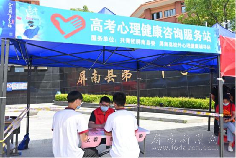 今日屏南消息 高考如约而至,屏南高三学子为了梦想奔赴考场,奋笔书写青春考卷,奋臂拥抱斑斓梦想。为深入推进“我为青年办实事”,在全县形成关心、支持、参与高考的志愿服务氛围,给广大考生营造一个文明和谐、安全畅通、舒心安静的考试环境,为广大考生提供力所能及的关心和帮助,6月7日至9日,屏南团县委联合县交警大队、县检察院、县消防救援大队、屏南一中、城东社区、县青年志愿者协会、县校外心理健康辅导站等单位开展“爱心助考,为梦想护航”志愿服务活动。 活动现场,志愿者们在高考考点门口搭建高考服务站、党员先锋岗、高考心理健康咨询服务站、青年志愿服务站等7个服务站,积极开展文明引导、维护秩序等志愿服务,为考生营造安静有序的周边环境。 “同学需要水吗?”“同学加油!”……志愿者们给赴考的同学们送去一声声温暖的问候,并把事先准备好的矿泉水、口罩、考试用品(笔、尺子、橡皮、2B铅笔)、纸巾、防暑药物等应急物品摆放在桌子上,送给有需要的考生。 当高考遇到下雨天,志愿者们为考生接力下车,让他们下车时不被雨水淋湿衣物,及时帮助考生安全有序地进入考场。 “同学,如果你觉得在考前比较紧张,可以适当的放松一下,来跟我一起做,用拇指压按太阳穴......”今年高考期间,团县委还联合屏南县校外心理健康辅导站专门设立高考心理健康咨询服务点,在现场为高考学子进行心理咨询服务,帮助他们有效缓解紧张情绪。 今年高考期间,青年志愿者们用贴心的服务,创造了优良的陪考环境,受到广大青年学子和家长的认可与欢迎,成为考场外一道靓丽的风景线。今后,屏南团县委将带领青年志愿者继续弘扬“奉献、友爱、互助、进步”的志愿服务精神,为高考考生保驾护航。也祝愿考生们金榜题名,考上自己理想的大学!