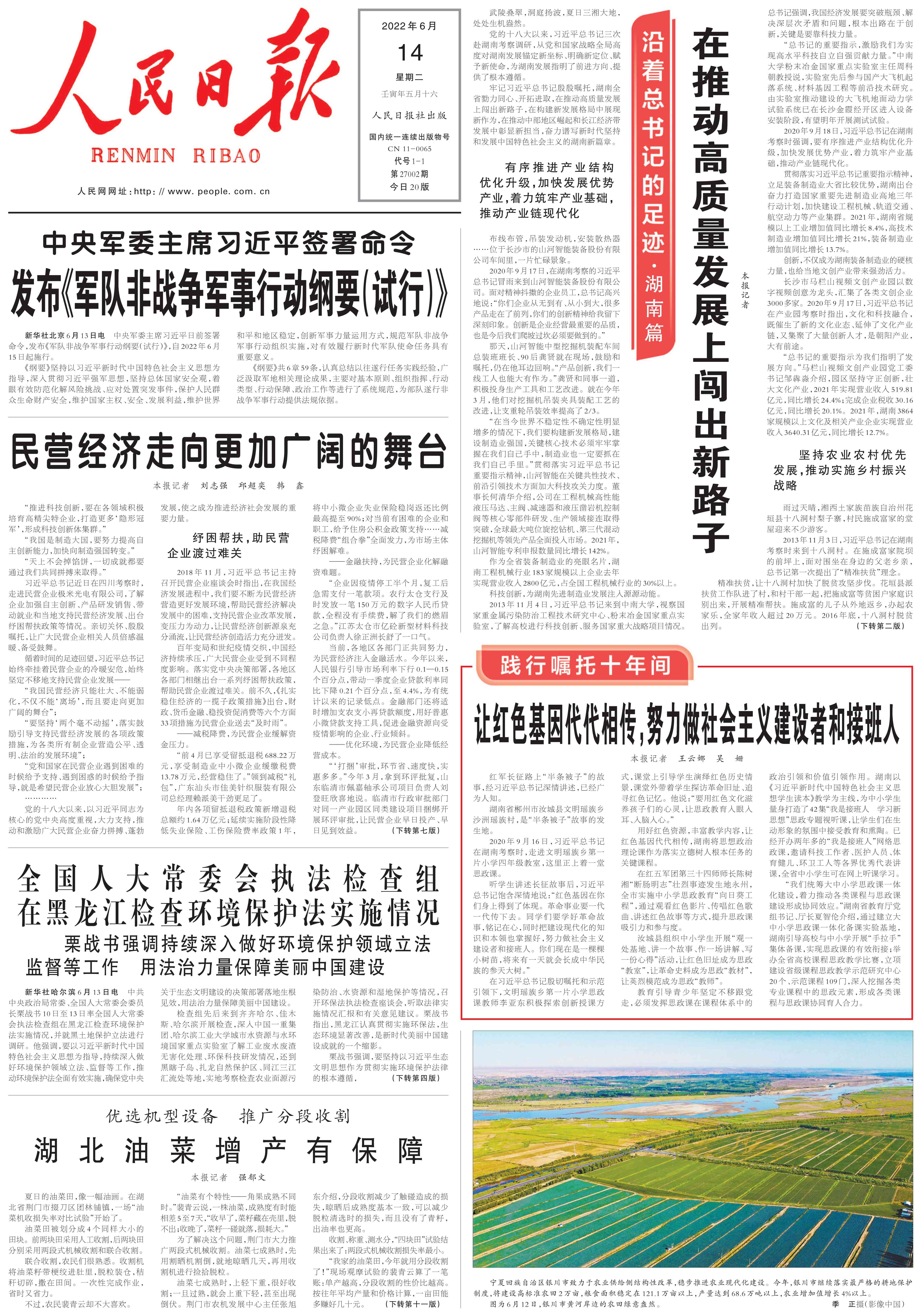 原标题:在推动高质量发展上闯出新路子(沿着总书记的足迹·湖南篇) 武陵叠翠,洞庭扬波,夏日三湘大地,处处生机盎然。 党的十八大以来,习近平总书记三次赴湖南考察调研,从党和国家战略全局高度对湖南发展锚定新坐标、明确新定位、赋予新使命,为湖南发展指明了前进方向、提供了根本遵循。 牢记习近平总书记殷殷嘱托,湖南全省勠力同心、开拓进取,在推动高质量发展上闯出新路子,在构建新发展格局中展现新作为,在推动中部地区崛起和长江经济带发展中彰显新担当,奋力谱写新时代坚持和发展中国特色社会主义的湖南新篇章。 有序推进产业结构优化升级,加快发展优势产业,着力筑牢产业基础,推动产业链现代化 布线布管,吊装发动机,安装散热器……位于长沙市的山河智能装备股份有限公司车间里,一片忙碌景象。 2020年9月17日,在湖南考察的习近平总书记冒雨来到山河智能装备股份有限公司。面对精神抖擞的企业员工,总书记高兴地说:“你们企业从无到有、从小到大,很多产品走在了前列,你们的创新精神给我留下深刻印象。创新是企业经营最重要的品质,也是今后我们爬坡过坎必须要做到的。” 那天,山河智能中型挖掘机装配车间总装班班长、90后龚贤就在现场,鼓励和嘱托,仍在他耳边回响。“产品创新,我们一线工人也能大有作为。”龚贤和同事一道,积极投身生产工具和工艺改进。就在今年3月,他们对挖掘机吊装夹具装配工艺的改进,让支重轮吊装效率提高了2/3。 “在当今世界不稳定性不确定性明显增多的情况下,我们要构建新发展格局,建设制造业强国,关键核心技术必须牢牢掌握在我们自己手中,制造业也一定要抓在我们自己手里。”贯彻落实习近平总书记重要指示精神,山河智能在关键共性技术、前沿引领技术方面加大科技攻关力度。董事长何清华介绍,公司在工程机械高性能液压马达、主阀、减速器和液压凿岩机控制阀等核心零部件研发、生产领域接连取得突破,全球最大吨位旋挖钻机、第三代混动挖掘机等领先产品全面投入市场。2021年,山河智能专利申报数量同比增长142%。 作为全省装备制造业的亮眼名片,湖南工程机械行业183家规模以上企业去年实现营业收入2800亿元,占全国工程机械行业的30%以上。 科技创新,为湖南先进制造业发展注入源源动能。 2013年11月4日,习近平总书记来到中南大学,视察国家重金属污染防治工程技术研究中心、粉末冶金国家重点实验室,了解高校进行科技创新、服务国家重大战略项目情况。总书记强调,我国经济发展要突破瓶颈、解决深层次矛盾和问题,根本出路在于创新,关键是要靠科技力量。 “总书记的重要指示,激励我们为实现高水平科技自立自强贡献力量。”中南大学粉末冶金国家重点实验室主任周科朝教授说,实验室先后参与国产大飞机起落系统、材料基因工程等前沿技术研究。由实验室推动建设的大飞机地面动力学试验系统已在长沙金霞经开区进入设备安装阶段,有望明年开展测试试验。 2020年9月18日,习近平总书记在湖南考察时强调,要有序推进产业结构优化升级,加快发展优势产业,着力筑牢产业基础,推动产业链现代化。 贯彻落实习近平总书记重要指示精神,立足装备制造业大省比较优势,湖南出台奋力打造国家重要先进制造业高地三年行动计划,加快建设工程机械、轨道交通、航空动力等产业集群。2021年,湖南省规模以上工业增加值同比增长8.4%,高技术制造业增加值同比增长21%,装备制造业增加值同比增长13.7%。 创新,不仅成为湖南装备制造业的硬核力量,也给当地文创产业带来强劲活力。 长沙市马栏山视频文创产业园以数字视频创意为龙头,汇集了各类文创企业3000多家。2020年9月17日,习近平总书记在产业园考察时指出,文化和科技融合,既催生了新的文化业态、延伸了文化产业链,又集聚了大量创新人才,是朝阳产业,大有前途。 “总书记的重要指示为我们指明了发展方向。”马栏山视频文创产业园党工委书记邹犇淼介绍,园区坚持守正创新,壮大文化产业,2021年实现营业收入519.81亿元,同比增长24.4%;完成企业税收30.16亿元,同比增长20.1%。2021年,湖南3864家规模以上文化及相关产业企业实现营业收入3640.31亿元,同比增长12.7%。 坚持农业农村优先发展,推动实施乡村振兴战略 雨过天晴,湘西土家族苗族自治州花垣县十八洞村梨子寨,村民施成富家的堂屋迎来不少游客。 2013年11月3日,习近平总书记在湖南考察时来到十八洞村。在施成富家院坝的前坪上,面对围坐在身边的父老乡亲,总书记第一次提出了“精准扶贫”理念。 精准扶贫,让十八洞村加快了脱贫攻坚步伐。花垣县派扶贫工作队进了村,和村干部一起,把施成富等贫困户家庭识别出来,开展精准帮扶。施成富的儿子从外地返乡,办起农家乐,全家年收入超过20万元。2016年底,十八洞村脱贫出列。去年,十八洞村人均纯收入达到20167元,村集体经济收入增长到268万元。 2020年底,湖南实现682万贫困人口全部脱贫、6920个贫困村全部出列、51个贫困县全部摘帽。 脱贫摘帽不是终点,而是新生活、新奋斗的起点。“要坚持农业农村优先发展,推动实施乡村振兴战略。”2020年9月18日,习近平总书记在湖南考察时为三湘大地“三农”发展指明方向。 贯彻落实习近平总书记重要指示精神,湖南扎实推进巩固拓展脱贫攻坚成果同乡村振兴有效衔接。