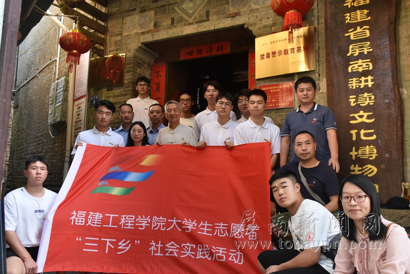 今日屏南消息 7月4日,福建工程学院土木工程学院暑期“三下乡”社会实践团来到宁德屏南,参观了屏南县林则徐禁毒教育基地和屏南耕读文化博物馆禁毒教育基地,并携手屏南县禁毒办入村庄,积极开展禁毒知识科普公益活动。 在屏南县林则徐禁毒教育基地,实践团成员了解了我国的禁毒史、毒品的种类、危害等内容,不仅在毒品危害和防范上有了更加立体的认识,还对禁毒防毒政策以及相关的法律法规有了更深刻的理解,共同进行禁毒宣誓及签名,彰显禁毒决心。在屏南耕读文化博物馆禁毒教育基地,倾听福建省首届“最美禁毒人”、乡愁记忆的守望者——张书岩和他的耕读文化博物馆的故事。