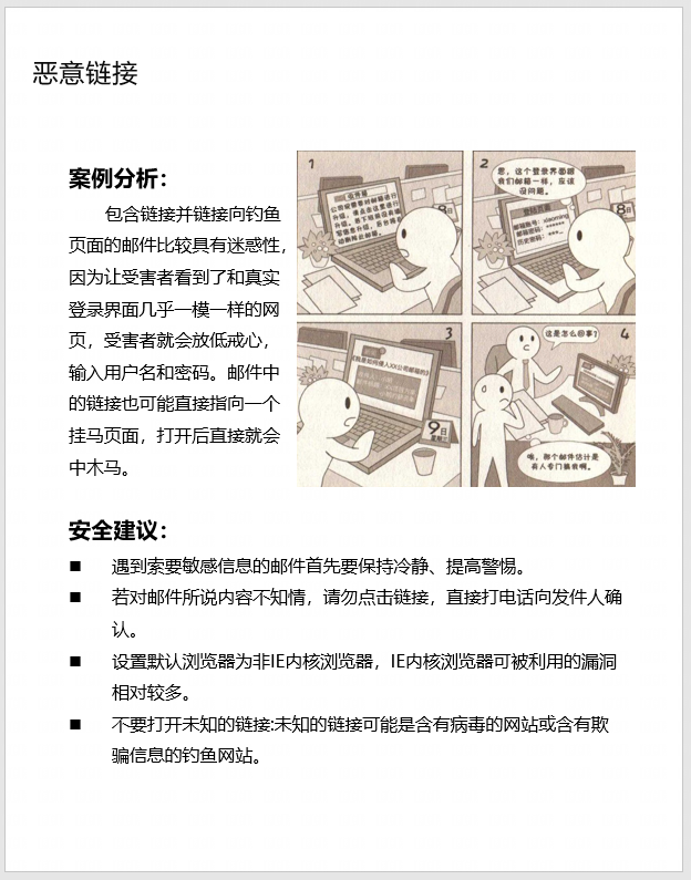 邮件安全(下) ![]() 每日安全小练习 1、当您收到一封落款集团信息技术中心的邮件,说您的OA门户账号存在异常,需要访问指定网站输入账号和密码进行重置,以下最正确的做法是?(D) A、OA账户存在异常,应立即按邮件要求处理 B、我先点击链接看看再做决定 C、不理会 D、先不理会,再向集团信息技术中心确认邮件真实性 2、可以从哪些方面增强接收邮件的安全性?(D) A、电话沟通发件人确认邮件真实性 B、定期更新防病毒软件 C、不断优化垃圾邮件设置 D、以上都是 3、当您收到一份邮件时,比较安全的处理方法是?(B) A、只要邮件来自我知道的人或公司,邮件就是安全的 B、首先确认发件人信息是否可信,其次对附件进行病毒查杀 C、我认为打开邮件附件对计算机并不能造成危害 D、直接双击打开附件 4、以下选项不是良好的邮箱使用习惯的是哪个?(A) A、随意下载附件 B、不要随意点击不明链接 C、只在真实可信的网页上输入账号密码 D、不要使用公众场所的电脑登入个人电邮信箱 5、哪些邮件可以确认是公司内部邮件?(C) A、签名中有公司logo B、正文中有公司上级领导的名字 C、发件人的邮箱地址是公司域名后缀 D、有公司相关信息 |