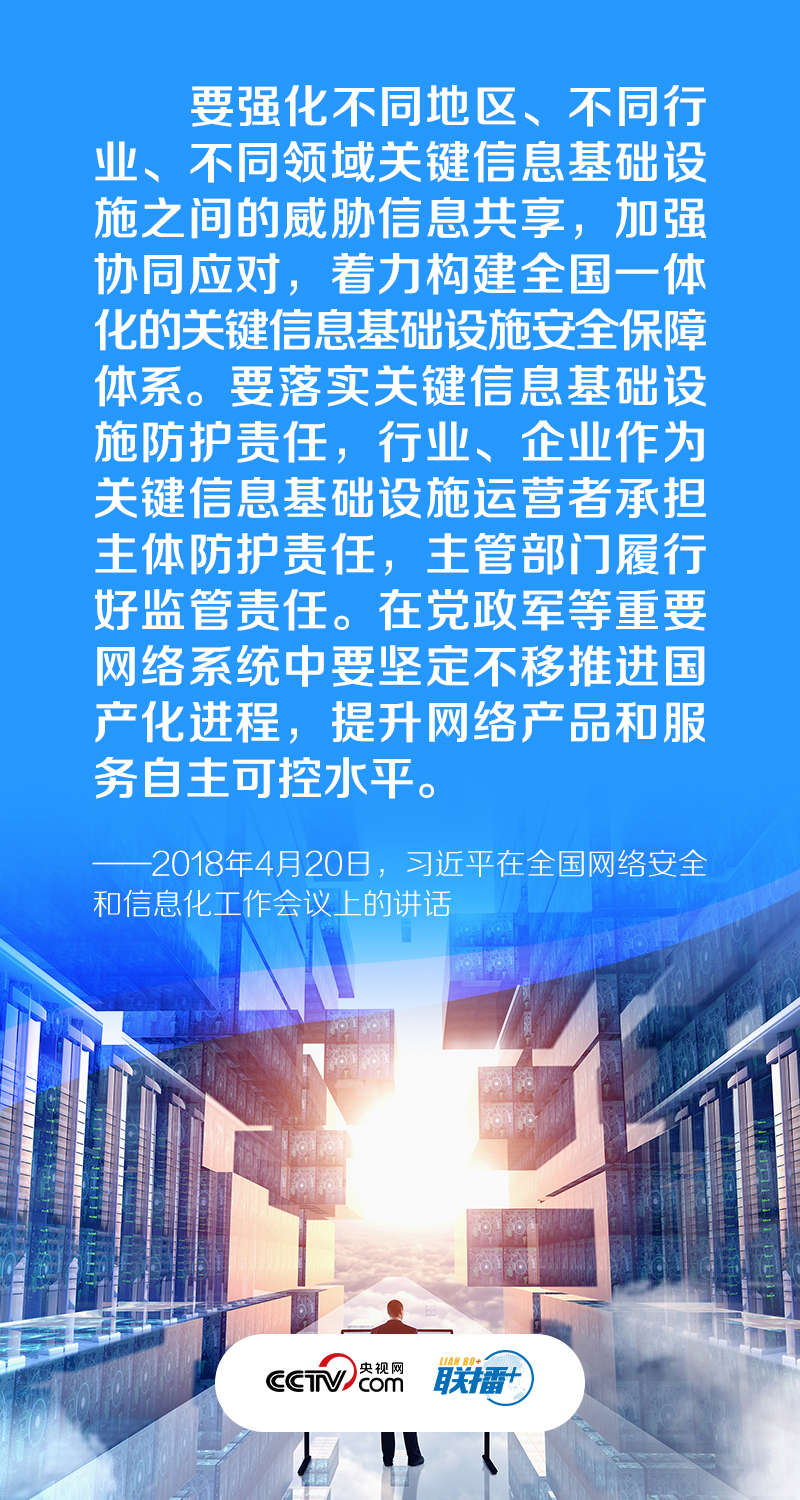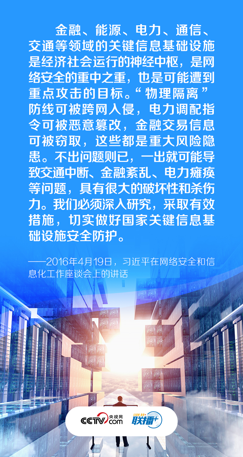 |联播+|金融、能源、电力、通信、交通等领域的关键信息基础设施是经济社会运行的神经中枢,是网络安全的重中之重,也是可能遭到重点攻击的目标。”习近平总书记强调,关键信息基础设施是网络安全防护的重中之重,“我们必须深入研究,采取有效措施,切实做好国家关键信息基础设施安全防护”。