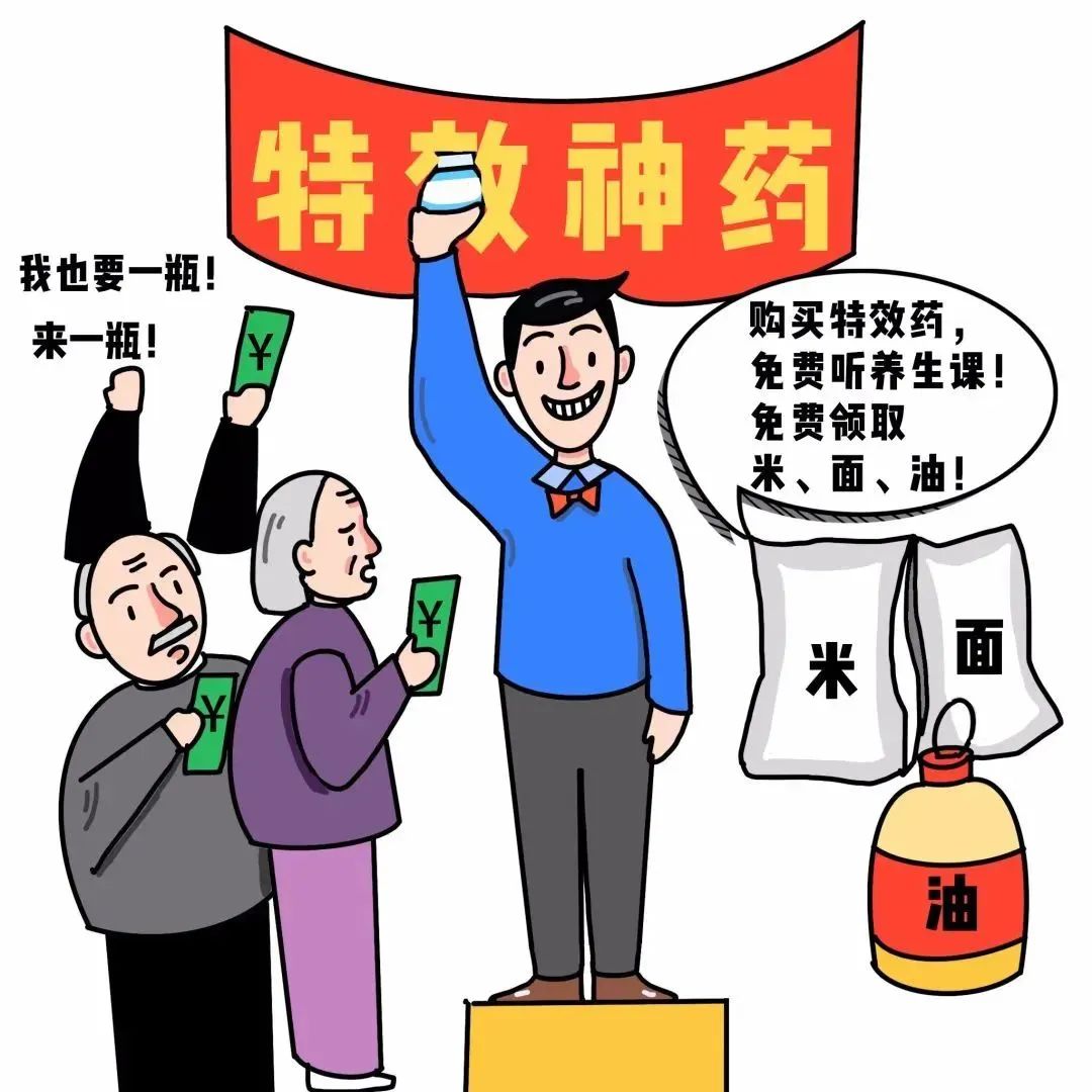 不法分子往往瞄准老年人渴望健康、缺乏保健常识的心理,通过赠送米、面、鸡蛋等小礼品,陪伴聊天解闷等方式对老年人虚假关心,取得老年人的信任后,开始推荐包治百病的“神药”,打着祛病强身、偏方有奇效等幌子夸大“保健品”的功效,诱骗老年人购买价格虚高的保健品或假冒伪劣产品。 不法分子利用老年人外出游玩的热情及节俭的生活习惯,诱骗老年人参加低价游、免费游,事实上,在旅游过程中,不法分子会安排各种购物环节,将商品以远高于市场的价格出售给老年人进行牟利,有的甚至通过威胁的方式强买强卖。