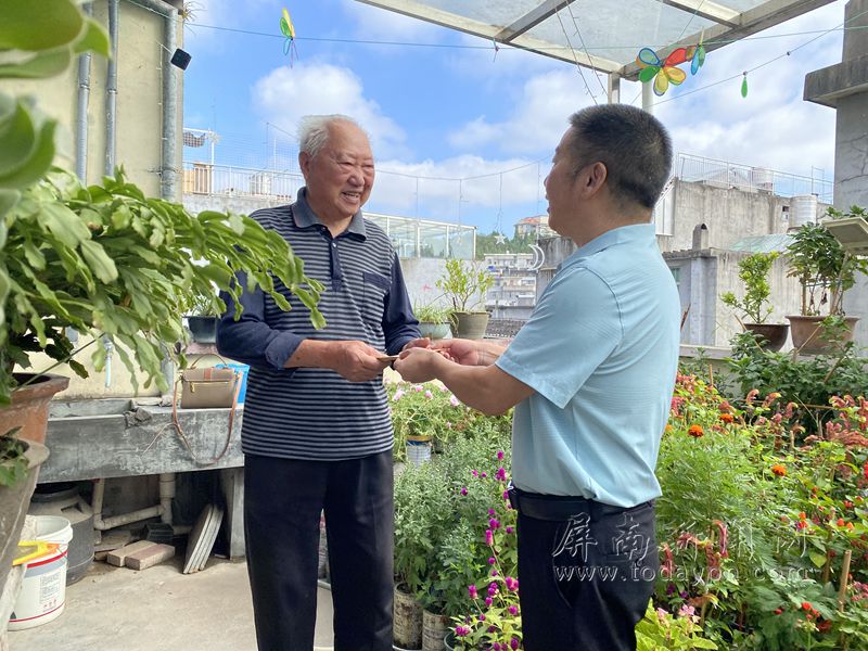 今日屏南消息 为大力弘扬劳模精神、劳动精神、工匠精神,积极营造“尊重劳模、学习劳模,尊重老人、关爱老人”的良好氛围,9月29日,在重阳节来临之际,县委常委、县总工会主席陈传旺,县总工会党组书记、常务副主席林芩一行走访看望了我县4名90周岁以上省级劳模:杨宝光(1958年受表彰的省劳模)、张家从(1959年受表彰的省劳模)、张贤坤(1959年受表彰的省劳模)、黄维金(1959年受表彰的省劳模),并为他们送上高龄劳模慰问金。 走访中,陈传旺一行与劳模们亲切交谈,详细了解他们的身体状况和生活情况,感谢他们在过去的岁月里对经济建设和社会发展作出的贡献,并送上节日的祝福。 |