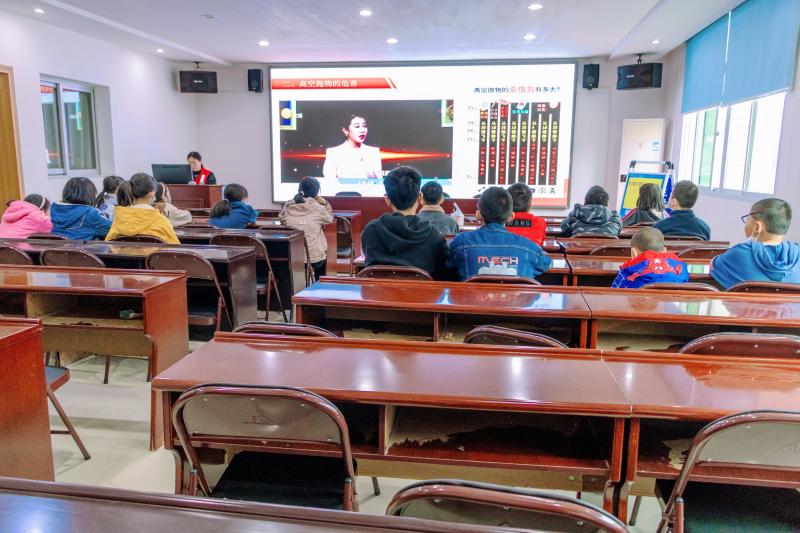 孩子们认真观看高空抛物的危害视频。陈洛温 摄 宣讲活动中,志愿者借助PPT演示,从高空抛物的概念、高空抛物的危害、高空抛物相关法律法规、预防高空抛物四个方面进行详细讲解,通过几个小视频让孩子们直观感受高空抛物的危害和后果;带领孩子们开展“禁止高空抛物 共建文明社区”签名承诺行动,倡导孩子们从身边点滴做起,向高空抛物行为说再见,争做文明小标兵。 为寓教于学,让孩子们切身体会到高空抛物的杀伤力,志愿者指导孩子们亲自动手开展“欢乐球球落纸上”“鸡蛋VS球,谁才是赢家”“鸡蛋落水历险记”三个科学小实验,实验后引导孩子们回顾、总结实验,将自己的感受和体会讲出来。孩子们表示,仅仅是一两米的高度,轻巧的乒乓球就能将鸡蛋砸破,可见高空抛物很危险。