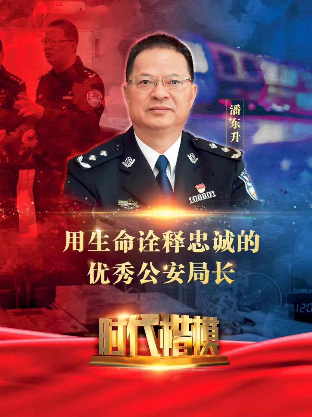 用生命诠释忠诚的优秀公安局长潘东升 图为2019年1月24日,潘东升同志(左二)在福州市公安局接待来访群众。 福州市公安局供图潘东升同志是深入学习贯彻习近平法治思想和习近平总书记关于加强新时代公安工作的重要论述、重要训词精神的优秀代表,是忠实践行“对党忠诚、服务人民、执法公正、纪律严明”总要求的榜样典范,是用生命诠释忠诚的优秀公安局长。潘东升,男,汉族,1964年9月生,福建平潭人,中共党员,生前系福建省公安厅党委委员,福州市人民政府副市长、市公安局局长。他从警37年,始终忠诚履职,拼搏奉献,作为普通民警,他勤勉敬业、吃苦耐劳、屡立战功;走上领导岗位后,仍坚持奋战在工作一线,维护公平正义、守护一方平安。他自觉践行人民公安为人民的根本宗旨,坚持和发展新时代“枫桥经验”,探索科技兴警举措、推进公安“放管服”改革,解决群众“急难愁盼”问题、提升社会治理水平。他从严管理队伍、强化纪律约束,维护民警权益、推行“暖警工程”,锤炼干部过硬作风、凝聚民警信心力量。他严守党纪国法、带头廉洁自律,生活艰苦朴素、注重家教家风,把毕生精力献给了人民公安事业,用一生赤诚践行了共产党员的崇高信仰。2021年9月,因长期超负荷工作,积劳成疾,不幸牺牲,年仅57岁。“党员干部就应该冲到一线!”潘东升用兢兢业业的奉献、无私忘我的牺牲,践行着新时代共产党员的初心使命、人民警察的坚定信念,展现了人民警察克己奉公、无私奉献的良好形象。潘东升被追授“时代楷模”、全国“人民满意的公务员”、“全国公安系统一级英雄模范”、“福建省优秀共产党员”等称号。