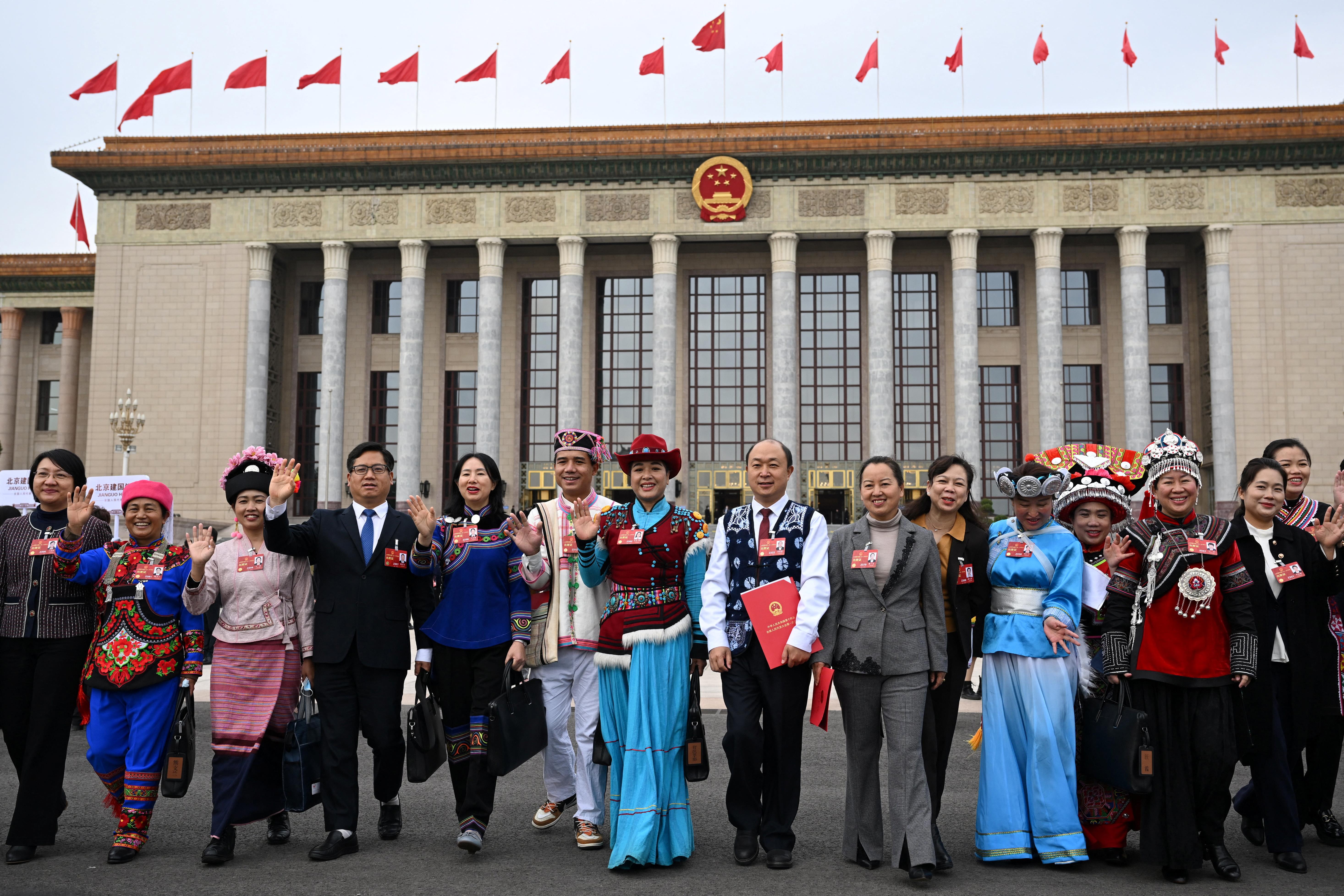 △2023年3月13日,第十四届全国人民代表大会第一次会议在北京人民大会堂闭幕。这是会后,代表走出人民大会堂。 今年全国两会上,习近平总书记进一步指出,要贯彻以人民为中心的发展思想,完善分配制度,健全社会保障体系,强化基本公共服务,兜牢民生底线,解决好人民群众急难愁盼问题,让现代化建设成果更多更公平惠及全体人民,在推进全体人民共同富裕上不断取得更为明显的实质性进展。