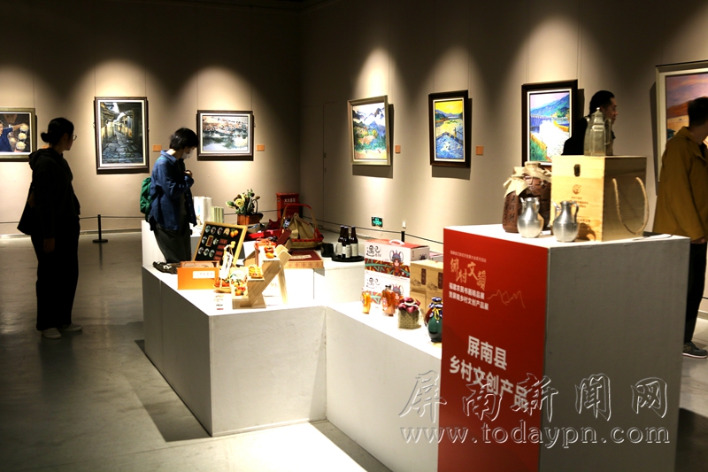 今日屏南消息(张声平)4月13日,由福建省文化和旅游厅指导,福建省乡村振兴研究会,中共屏南县委、屏南县人民政府主办,福建省美术馆承办的“乡村文韵——农民书画精品展暨屏南乡村文创产品展”在福建省美术馆举行。 绣工精致的布艺玩偶、包装新颖的屏南红曲黄酒、展现地方特色的油画演示、廊桥技艺体验......精美的文创产品和现场互动令参观的市民朋友们流连忘返。 “通过这些作品,我也感受到作者对乡村生活的浓厚感情,这也对我在美术方面有了更深层次的认识。”福州市市民赵奥晴表示,以后要更多的观察生活,从实践中寻找绘画灵感。 据悉,在福建省美术馆举办农民书画精品和乡村文创产品展,尚属首次。此次展览从4月13日到4月17日,持续5天时间,展出的书画精品来自我省首届农民书画展的优秀作品,部分油画作品出自屏南县“新老”村民之手,文创产品全部来自屏南县。 据了解,近年来,屏南县开创出“党组织+艺术家+古村落+村民+互联网”的模式,以艺术催化唤起创造力和情怀,让许多村民成为一个有艺术文化贡献的人,有50多位“新老”村民画作参加法国里昂双年展、国际残疾人艺术展、北京798等各级展览。
