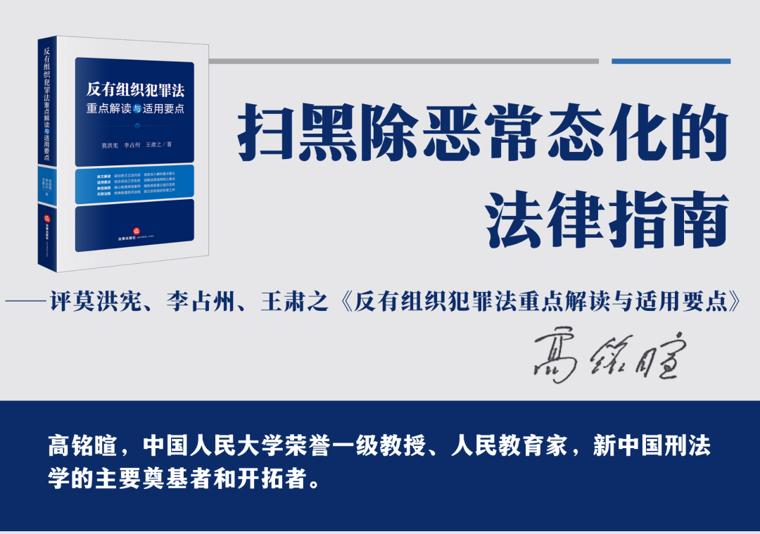 写在前面+ 深入学习贯彻落实党的二十大精神,切实推进扫黑除恶常态化,是新时代新征程上推进平安中国建设的重要举措。 由于反有组织犯罪工作的复杂性,《反有组织犯罪法》的内容涵盖方方面面,既涉及实体法问题,又涉及程序法问题;既涉及刑事法规定,又涉及行政法规定;既包括领导机制,又包括人员处遇;既创设专门制度,又指引协同治理;等等。因此,亟需一部深入阐释《反有组织犯罪法》立法脉络、规范原理、适用要求的专门著作,有效指导实践。莫洪宪、李占州、王肃之合著的《反有组织犯罪法重点解读与适用要点》,正是立足这一目标而精心撰写。 作为新中国刑法学的主要奠基者和开拓者,高铭暄教授对本书给予高度评价,并撰写书评,认为:“该书作为国内第一本系统、全面讲解《反有组织犯罪法》的指南类丛书,必将对指导反有组织犯罪工作实践发挥重要的作用,切实助力扫黑除恶常态化、长效化、法治化。” 习近平总书记在党的二十大报告中指出,扫黑除恶专项斗争取得阶段性成果,下一步应“推进扫黑除恶常态化”。由此,深入学习贯彻落实党的二十大精神,切实推进扫黑除恶常态化,是新时代新征程上推进平安中国建设的重要举措。“常态化”意味着“法治化”,意味着反有组织犯罪工作走向规范化、程序化。2021年12月24日,全国人民代表大会常务委员会通过了《中华人民共和国反有组织犯罪法》(以下简称《反有组织犯罪法》),系统总结扫黑除恶专项斗争实践经验,保障在法治轨道上常态化开展“扫黑除恶”工作。《反有组织犯罪法》既是专项斗争最重要的制度成果,也是未来反有组织犯罪工作的根本遵循,必须理解好、贯彻好、落实好。 同时,由于反有组织犯罪工作的复杂性,《反有组织犯罪法》的内容涵盖方方面面,既涉及实体法问题,又涉及程序法问题;既涉及刑事法规定,又涉及行政法规定;既包括领导机制,又包括人员处遇;既创设专门制度,又指引协同治理;等等。如果不能精准理解、适用其规定,不仅不能实现常态化治理的目标,反而可能导致实践偏差,引发不利社会后果。因此,亟需一部深入阐释《反有组织犯罪法》立法脉络、规范原理、适用要求的专门著作,有效指导实践。《反有组织犯罪法重点解读与适用要点》正是立足这一目标,是由具有理论功底和实务经验、深度参与《反有组织犯罪法》立法的专家精心撰写的反有组织犯罪工作法律指南。在内容上,该书具有以下特点: 第一,深度梳理立法脉络,全面阐释立法原理。该书没有简单地对于条文进行注解,而是专门设置“重点解读”,让读者能够快速、准确地理解和把握条文。一方面,该书提纲挈领地归纳了各项规范的发展历程,对于相关的规范沿革、实践发展进行精准概括,清晰明了地讲述条文的来龙去脉。另一方面,该书选取各个条文中的关键内容、特别要求进行专门阐释,深入浅出地解读条文的要点、重点。 第二,直面司法执法实践,融通实体程序规定。该书立足作者多年的实务经验,结合刑事司法、行政执法,围绕《反有组织犯罪法》各项规定的适用进行深入讲解,具有很强的指导性、应用性。针对《反有组织犯罪法》既涉及实体规定又涉及程序规定的特点,该书不仅结合刑法、刑事诉讼法等相关法律进行讲解,而且将相关司法解释、司法文件的繁复规定转化为具体要求,使读者清楚了解在反有组织犯罪工作中如何兼顾实体正义和程序正义。 第三,精准讲解适用要求,充分注重“以案释法”。该书“适用要点”部分重点围绕反有组织犯罪工作中面临的难点、痛点问题一一进行深入讲解,特别是细致阐明《反有组织犯罪法》各个条款规定的适用要求,使读者不仅明白“怎么看”,更明白“怎么办”。同时,该书还设置“案例指引”,围绕各项条文适用规则,从司法机关发布的典型案例中精心选编、提炼,并进行配套讲解,真正实现“以案释法”。 第四,强化创新条款讲解,注重法律规范协同。该书没有对所有条文采取“一刀切”的讲解模式,而是重点突出对《反有组织犯罪法》新创设的各项制度、规则进行专门讲解,既讲述该条文的创新之处,又细致对比其与既有规范的异同,从而确保全面理解和准确适用。同时,该书还专门设置“关联法规”,对于各个条文相关的立法规定进行摘录,便于读者举一反三,及时查询。 此外,作为解读书籍,作者也注重在一些空白、争议之处通过“可以”“一般”的表述来提供参考意见,以保证兼顾指导性和严谨性。 2022年1月25日,全国扫黑办印发通知,要求切实抓好《反有组织犯罪法》贯彻实施工作,深刻理解条文内涵精髓,提升运用法律武器打击、防范黑恶犯罪的能力水平。该书作为国内第一本系统、全面讲解《反有组织犯罪法》的指南类丛书,必将对指导反有组织犯罪工作实践发挥重要的作用,切实助力扫黑除恶常态化、长效化、法治化。 |