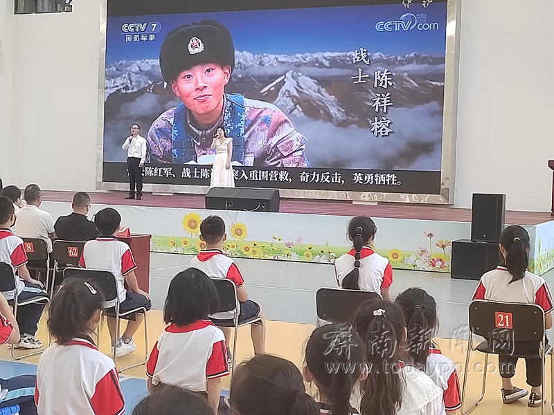 在国宝小学,四位宣讲员以“小切口”展现“大主题”,以“小故事”讲述“大道理”,用生动的语言、鲜活的事例和饱满的情感,讲述陈祥榕烈士成长的点点滴滴,以激发同学们的爱国情怀。大家还集中观看《清澈的爱 只为中国》视频、认真聆听歌曲《守护》。