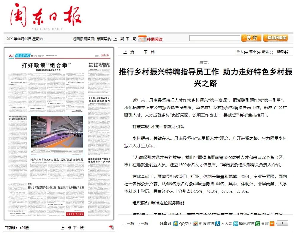| 近年来,屏南县坚持把人才作为乡村振兴“第一资源”,把党建引领作为“第一引擎”,深化拓展宁德市乡村振兴指导员制度,率先推行乡村振兴特聘指导员工作,形成了“乡村吸引人才、人才成就乡村”良好局面,该项工作也由“一县试点”转向“全市推开”。  白玉村“不耕农田” 打破常规 不拘一格聚才引智 乡村振兴,关键在人。屏南县坚持“实用即人才”理念,广开进贤之路,全力网罗乡村振兴人才生力军。 “为确保引才选才有的放矢,我们全面摸底屏南籍涉农优秀人才和来自28个省(区、市)在地就业创业人员,建立1500余名人才信息库。”屏南县委组织部有关负责人介绍。 在此基础上,屏南县打破部门、行业、体制等壁垒和地域、身份、专业等界限,面向社会各界公开招募,从609名报名对象中精选特聘104名,其中,体制外、非屏南籍、大学本科以上学历、民营经济人士分别占比75%、41.3%、67.3%、53.9%。  科技特派员李关发(右)正在指导夏优白新品种白菜种植管理 组织搭台 精准定位服务赋能 破格选人,更要搭台用好人。屏南县围绕乡村发展需求,将特聘指导员划分为党建、农业、文创、智库、电商等12类,细化具体服务内容53项,以兼职方式匹配服务驻点村73个和项目114个,在乡村产业发展、项目生成、品牌打造等领域献智献力。  田小宇在进行带货直播 “别看我们在村人数只有280人,还有近1000名‘云村民’在全国各地!”四坪村党支部书记潘家如说。这源于全国著名“三农”专家、特聘指导员温铁军团队启动的全国首个“云村民”计划,有力推动城乡要素“破圈”流动。其团队还策划生成“屏南800”生态公共品牌、“认领一亩田”、农村“三变”改革等一批首创性做法,助力乡村振兴提档升级。 此外,屏南县还出台“揭榜挂帅”项目工作管理办法,以项目牵引方式搭建“谁能干谁就上”的赛场,打造白玉村“稻田公社”等首批攻坚榜单10个,给予项目奖补95万元、个人“领赏”18.5万元,提高服务乡村质效。 通过组织搭台、人才唱戏,20名特聘指导员担任片区党委委员或发展顾问。片区内芙蓉李、闽派黄酒等36个产业项目实现迭代升级,去年,15个片区、53个村村集体收入平均提高30%以上;电商农产品销售市场半径不断扩大,累计销售农产品超13.46亿元;策划实施“1000个美育计划”等品牌活动30多个,实现乡村文化供给优质化多样化…… 倾情服务 千方百计拴心留人 功以才成,业由才广,屏南县坚持把“诗和远方”融入绿水青山,把“柴米油盐”写进服务文章,不断增强乡村承载力、吸引力和人才舒适感、归属感。 “感谢组织帮我协调孩子入学问题,解决了我的后顾之忧。”特聘指导员胡文亮说。 为改善工作生活“硬基础”“软环境”,屏南县活化利用古屋310多栋,打造成特色民宿、众创空间等业态,改造提升村级小学、卫生院,推动快递物流、金融网点、警务机构等进村。用好4500万元全国传统村落集中连片保护利用示范县专项资金,持续优化便捷生活条件,打造更多宜居宜业和美乡村。 同时,屏南县成立服务工作队,结合乡村“人才驿站”等平台,解决家属就业就学等问题63个。用活政策“大礼包”,落实服务保障十条措施,发放工作经费52万元,提供免担保低息贷款200多万元,“一事一议”奖补7名、2000多万元,推荐担任市县“两代表一委员”25名,获评省级以上表彰10名。  |