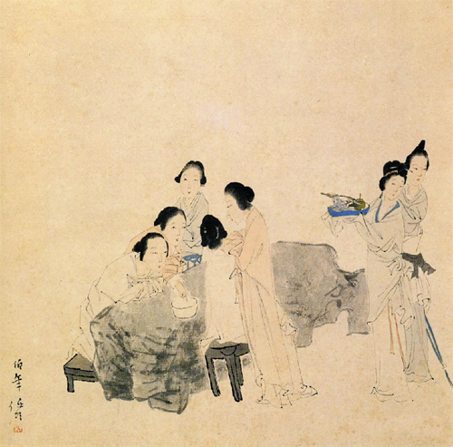清 任伯年《乞巧图轴》 这是古代女子在七夕当日进行的一项传统乞巧祈福游戏活动。每到农历七夕,女子相约在一起,轮流着手捏一枚绣针,轻轻地丢放到水碗中。借助水的浮力,绣针能够漂浮在水面上,在月光照射下,针的周围会出现微微的水纹,水纹的阴影投射到碗底形成不同的形状。人们会依据波纹的投影来祈福,比如女子投针时出现的波纹越复杂,就预示着她可以绣出美妙又丰富的织品;假如投影呈一把梭子的形状,预示着天上的织女愿意赐巧给这位女子,这算是最好的乞巧结果了。 当然,“投针乞巧”的民俗活动,只是七夕节当天众多乞巧活动的一种,寄寓着古代女子对“巧”与“美”的普遍追求,祈望自己能像天上的织女一样心灵手巧。除此之外,还有像“对星引线”“对星祭拜”以及陈列花果和女红等小巧精美的日常用具用以“乞巧”,让我们看到古代女子对美好生活的期盼和向往。 要说“七夕节”成为我国传统节日中最具浪漫色彩的一个重要原因,那就是因为牛郎织女的爱情传说了。虽然这段故事有许多不同的说法,但故事的结局是一致的,那就是王母娘娘最终被织女与牛郎的真情感动,允许他们在每年七月初七银河相会。每到七夕当晚,喜鹊会飞到天上,在银河之上架起鹊桥,让牛郎织女佳期相聚。因此,“七夕”也便有了更加浪漫和深刻的爱情寓意,成为青年男女们格外重视的日子。 如今,七夕节也被青年男女们称为“情人节”。不过,由于古代“七夕节”的民间传统习俗活动中并没有涉及多少情侣约会的民俗活动,因此一些民俗学专家认为称七夕节为“情人节”不够妥当,而称其为“爱情节”更好。其实不论怎样称呼,“乞巧”与“爱情”仍旧是七夕节中两项重要的民俗文化主题,并且两者之间紧密联系。古时七夕节的民间民俗活动也大多围绕这两大主题发生,且又同时与女性密切关联,所以,七夕节被称作“女儿节”也就不足为奇。 每到农历“七夕节”,我国多地的民俗活动中,依然沿袭着古代“七夕”节庆的双重文化含义——“乞巧和爱情”。在广东一些地区,青年女子们在每年七夕前就将稻谷、红豆、绿豆等提早浸泡在瓷碗中发芽,待到临近七夕节时,她们会用竹篾纸轧制和裱糊起一座座鹊桥,配上谷苗、豆苗,制作出色彩美丽、形态丰富、工艺精巧的节日饰品。到了农历七夕当晚,她们还会摆起供桌,盛上种类丰富的花卉、水果以及女红织物,大显制作工巧;把水果切削、拼叠成众多可爱的鸟兽形状的大果盘;用丝线绣织罗帐、帷幔、桌裙,并精心插花;用彩色的绸缎扎成精致的雏偶,一男一女代表牛郎织女团聚等,尽情展示其巧手工艺。此外,浙江的“七夕香桥会”、湖南的“七夕浴发”、山东的“拜七姐”“作巧花”、四川的“染指甲”、陕西的“扎巧姑”“剪窗花”,广西的“七夕储水”等,都是人们对我国传统七夕乞巧文化习俗的当代传承。 伴随着商业社会的快速发展,“七夕节”也被越来越多的当代青年男女们借以爱情之名,赋予更多的消费文化观念。他们常常兴奋地称“七夕节”为中国的“情人节”,使“七夕节”更多地呈现出一种充满时尚气息和浪漫情调的大众消费文化体验,展示出更多的时尚文化元素和商业文化气息。随着“七夕节”越来越多地成为一种线上线下共同作用、面向青年男女的消费时尚,青年男女也越来越愿意去了解中国传统节日“七夕节”所蕴含的“乞巧”文化意涵,并主动参与到传承“乞巧”传统文化活动的美好体验中。(魏辉) |