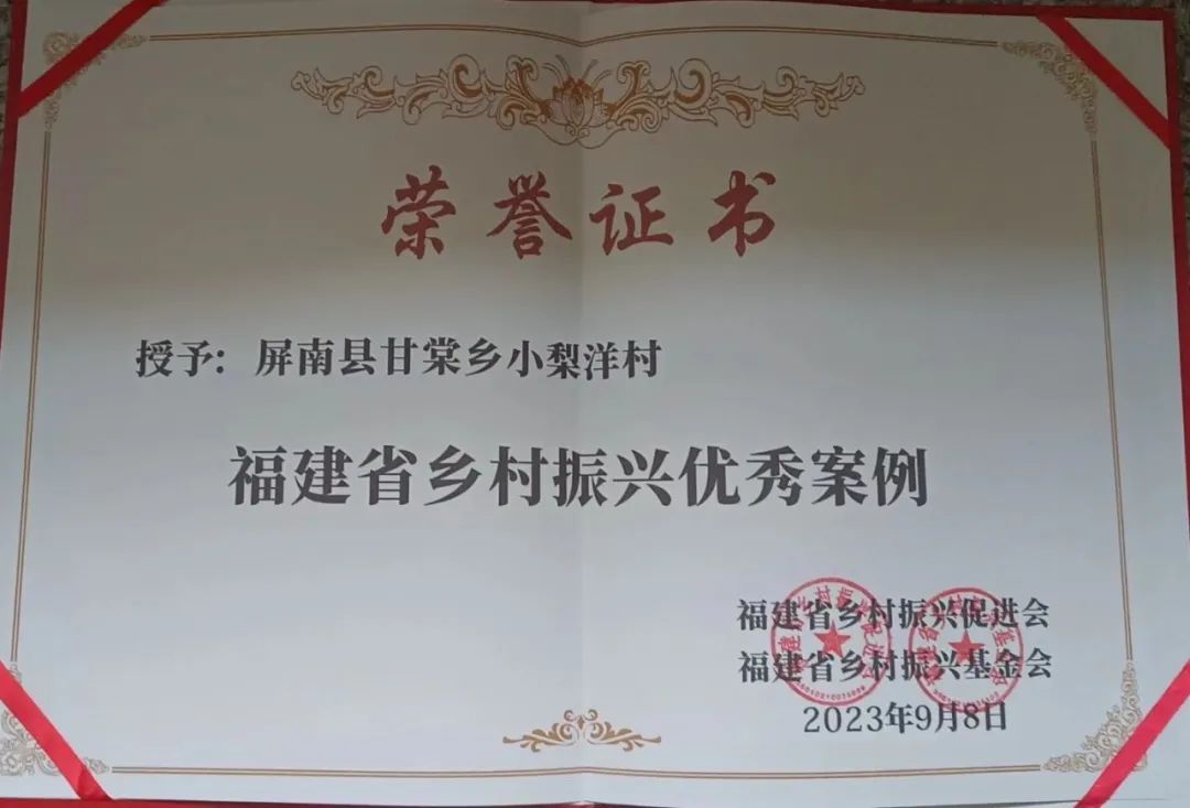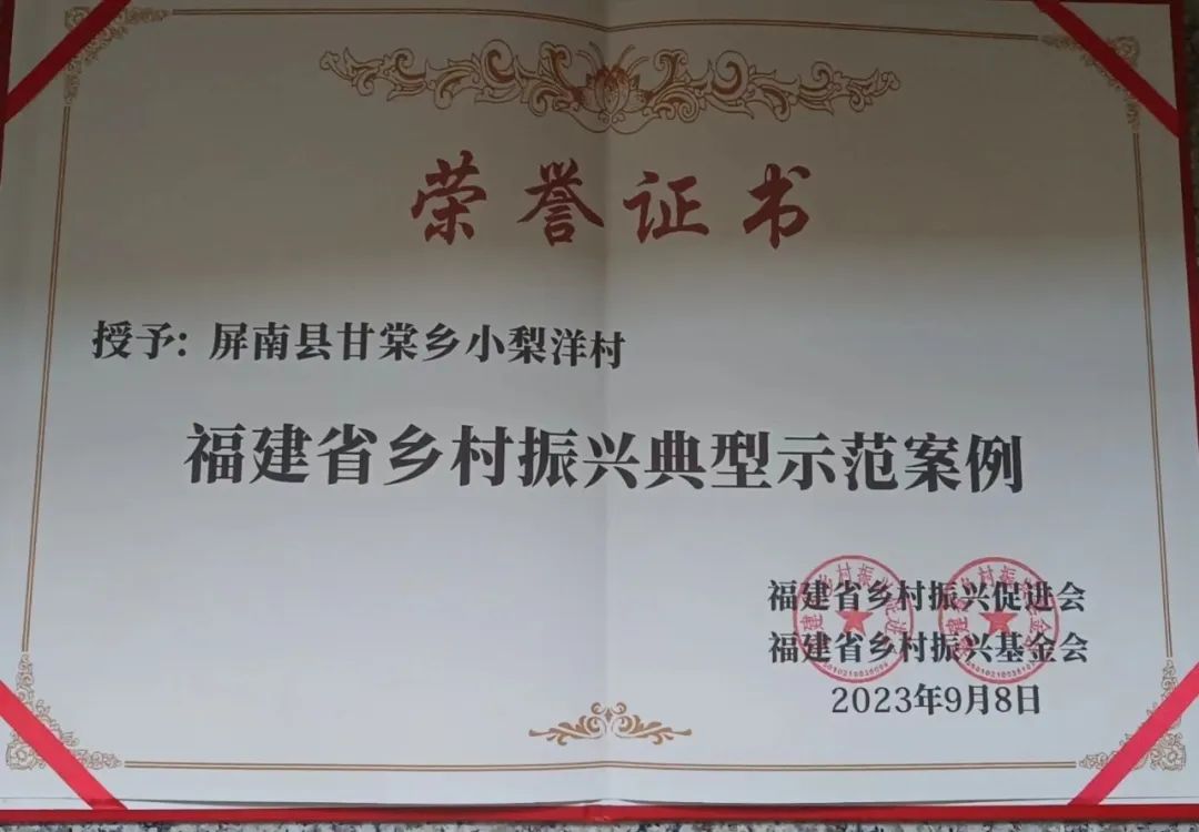 喜报!甘棠乡小梨洋村乡村振兴案例获评福建省乡村振兴优秀案例和典型示范村