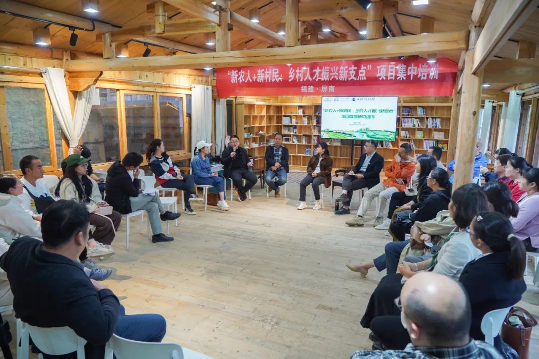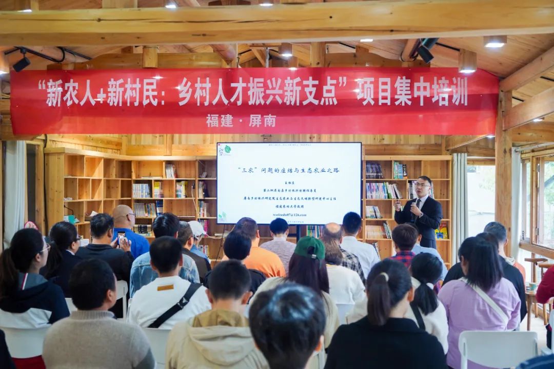 经过两天的集中学习,40余名屏南乡村振兴在地人才圆满完成了首期集中培训。“醍醐灌顶”“打破自我”“重构乡村价值”“有温度的人”“不忘初心”“扎根泥土、向上生长”……结业仪式上,大家结合各自在乡村的探索经历、分享了各自的收获与感悟。通过本次培训,大家对乡村振兴理念、三农问题与生态农业、社会美育、农业研学与三产融合等有了更多了解,同时与专家、乡村振兴实践者深入交流,进一步探索前行的方向,找到同行者。