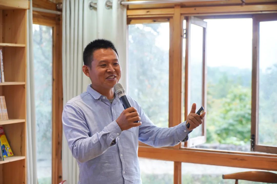乡野艺校创始人/校长、屏南县首批乡村振兴特聘指导员毛华磊作《乡野艺校——以文教助力乡村振兴》演讲。他介绍:乡野是文明之地、智慧之所,是人与人的所在,亦是我们的扎根所在。乡野艺校提出1000个美育计划,从人与人、人与自然、人与文化关系出发相互联系、拓展,从孩童到成人、从个体到社区、从生活到生产,分别生长出 4 个特色项目——自然与生活相融合的《乡村美育课堂》、情景式田野调研《今晚吃什么? 》、文化挖掘与重塑的《节日快乐》、产教融合的《生态产业1+N》。他提出“躬身入局、扎根在地、慢慢生长”的理念与大家共勉,期待共同在乡村,做点善良的事情。