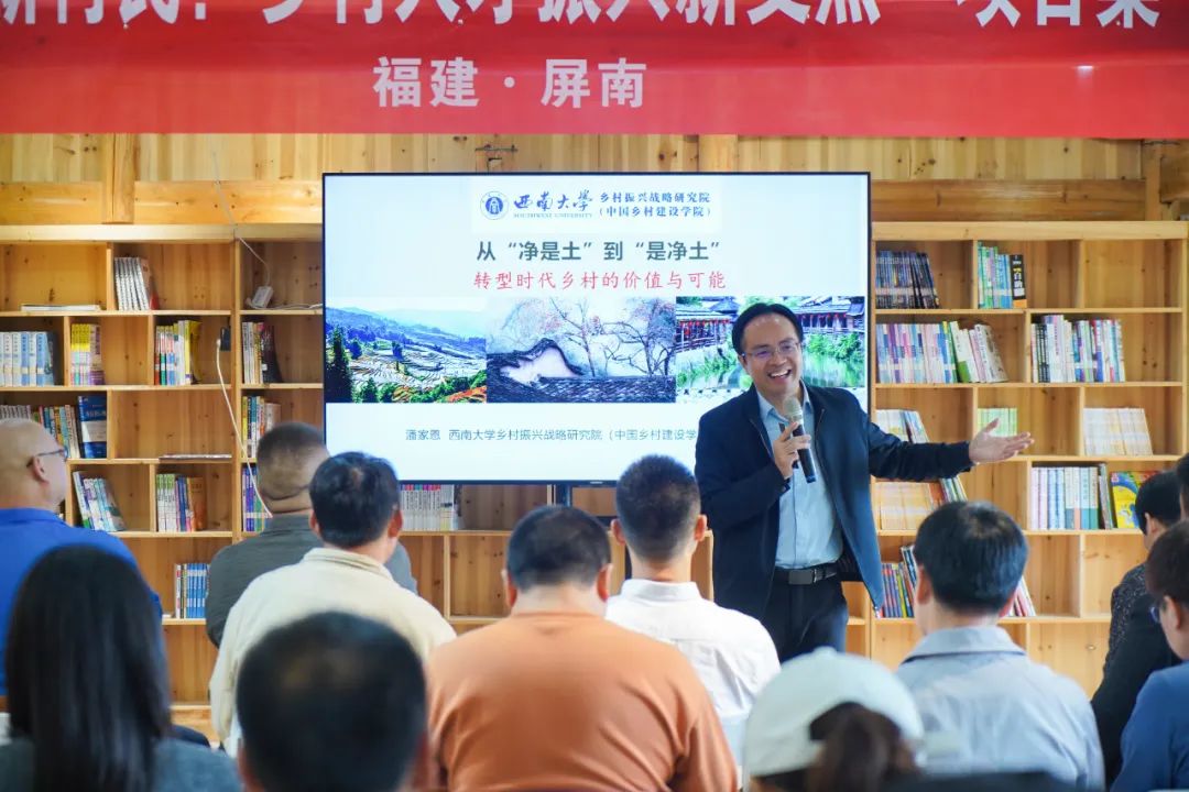 屏南乡村振兴研究院执行院长潘家恩教授向学员们表示了热烈的欢迎,并向各位学员介绍了屏南人才振兴的特点、回顾了三农问题的提出背景,他特别指出今天的时代是地球村的时代,强调了我院扎根乡土、立足屏南、面向全国、国际视野的初衷。