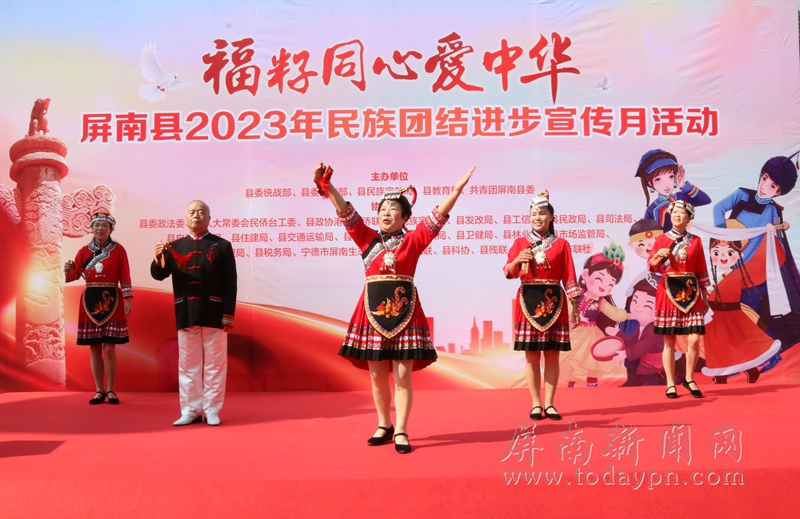 今日屏南消息(陈伟杰)10月17日,屏南县举办以“铸牢中华民族共同体意识”为主题的2023年民族团结进步宣传月活动。县委统战部、县委宣传部、县民族宗教局、县教育局、团县委等22个单位的分管领导、工作人员以及各乡镇统战委员,少数民族村书记参与活动。