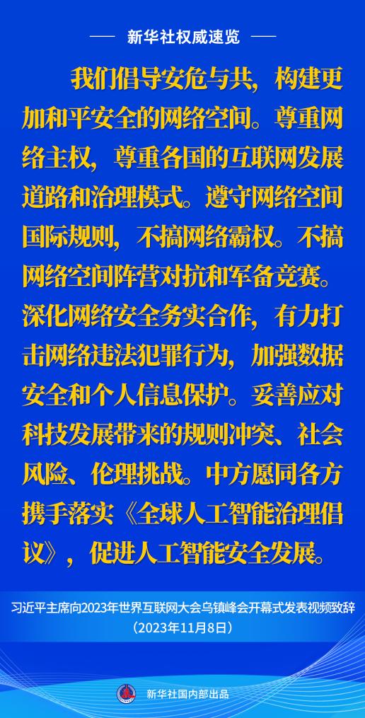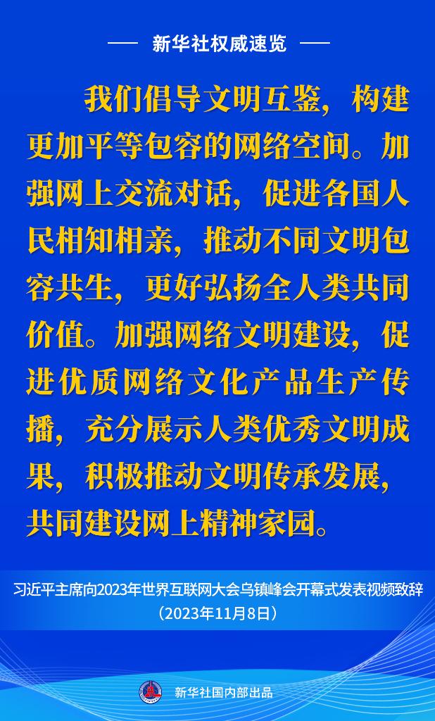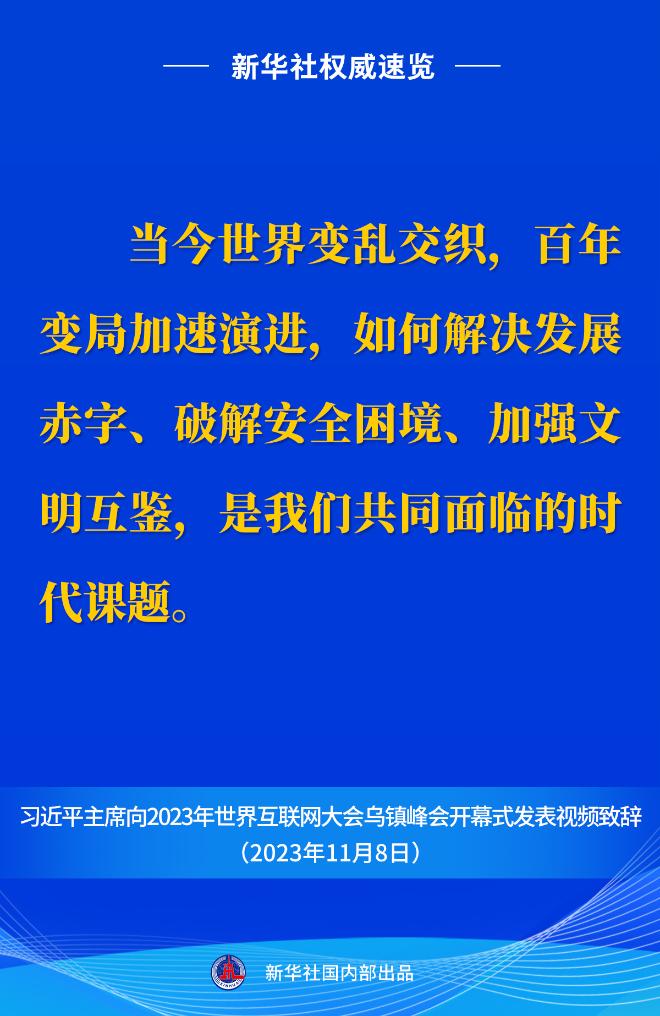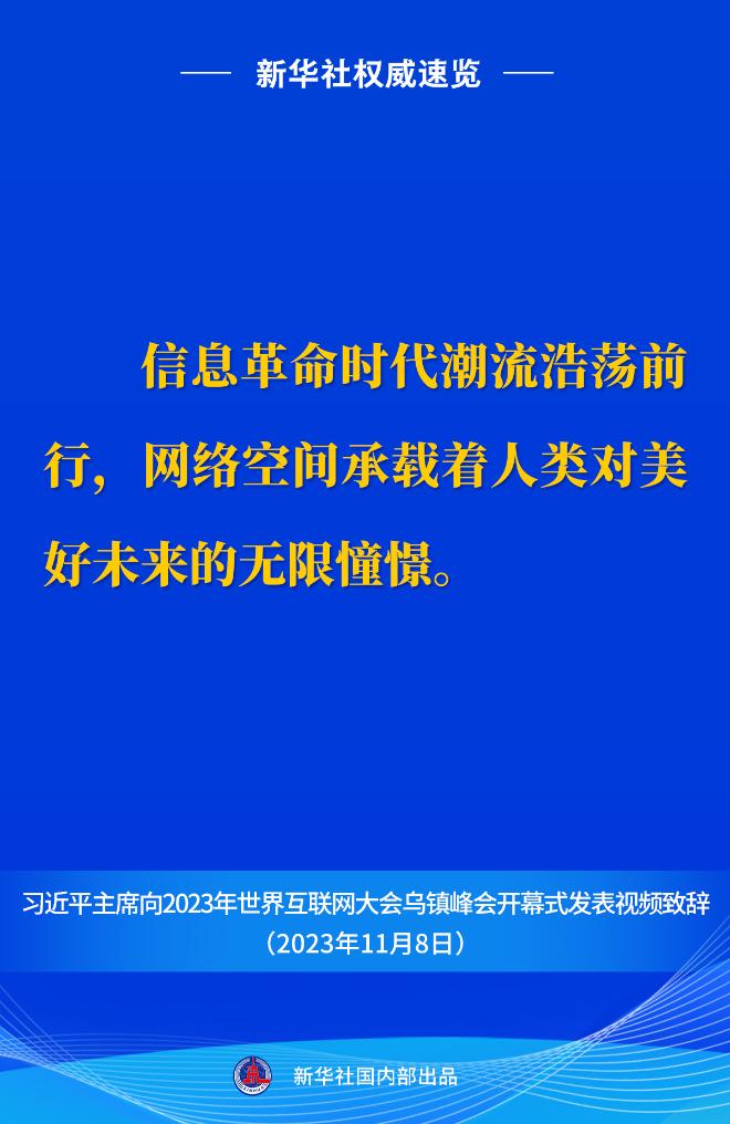 新华社权威速览丨习近平主席向2023年世界互联网大会乌镇峰会开幕式视频致辞金句