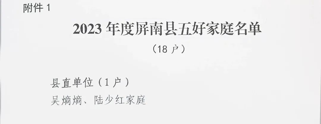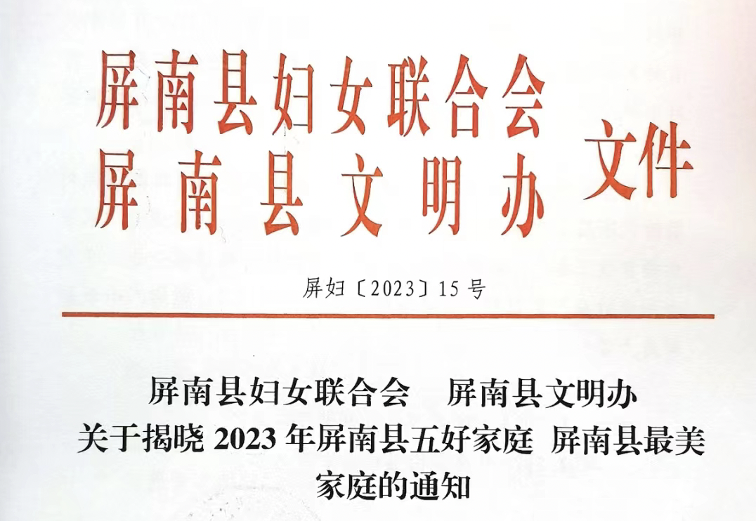喜报|屏南县检察院干警家庭荣获2023年屏南县“五好家庭”称号