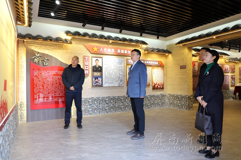 今日屏南消息(甘叶斌)4月9日,县委副书记、县长柳岳率队前往甘棠乡开展“四下基层”调研,指导推进陈祥榕事迹展陈中心建设。县领导陆东炫、韦孝珠、陈端青参加。 甘棠乡下山口村是烈士陈祥榕的老家。柳岳一行实地察看村容村貌,详细了解乡村发展规划,并来到陈祥榕事迹展陈中心,仔细察看中心整体环境、展陈布局,认真听取情况汇报,与县相关部门负责人座谈交流,就下一步工作重点提出意见。 柳岳强调,要高度重视,成立专班抓推进,认真做好顶层设计,注重整体规划,统筹安排、着眼长远,不断丰富纪念形式和活动载体,更好传承“清澈的爱,只为中国”的精神。要在布展内容上要多下功夫,深入挖掘和收集烈士陈祥榕的相关素材,通过图片、文字、实物、视频等多种形式,生动展现烈士陈祥榕的光辉事迹和动人故事。要聚焦品牌建设,立足目标定位,结合时代特征,深挖精神内涵,注重精品创作,进一步扩大“清澈的爱,只为中国”精神传播力,不断擦亮成为屏南“红色文化名片”。 |