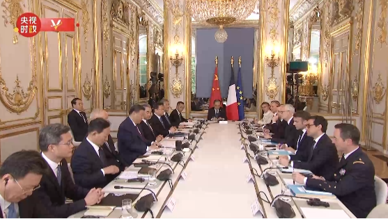 习近平指出,很高兴应邀在中法建交60周年之际,对法国进行第三次国事访问。双方应该坚守独立自主、相互理解、高瞻远瞩、互利共赢的建交初心,并为其注入新的时代内涵。在当前世界百年变局、乱局下,中法要坚持独立自主,共同防止“新冷战”或阵营对抗;要坚持相互理解,共同促进多彩世界的和谐共处;要坚持高瞻远瞩,共同推动平等有序的世界多极化;要坚持互利共赢,共同反对“脱钩断链”、“筑墙设垒”。