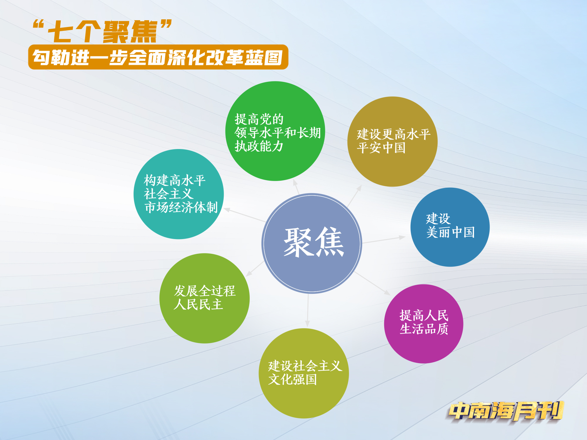 △中国共产党第二十届中央委员会第三次全体会议于2024年7月15日至18日在北京举行。中央委员会总书记习近平作重要讲话。 一直以来,习近平总书记对进一步全面深化改革思考的很深、谋划的很实。 2022年10月,在党的二十大报告中,总书记把“坚持深化改革开放”列为前进道路上必须牢牢把握的重大原则之一。2023年2月,在党的二十届二中全会上,总书记对深化党和国家机构改革、推进国家治理体系和治理能力现代化作出重要部署。2024年3月,全国两会期间,总书记在参加江苏代表团审议时指出,“要谋划进一步全面深化改革重大举措”。 党的二十届三中全会提出的“七个聚焦”,既是推进中国式现代化的发力点,也是进一步全面深化改革的着力点——