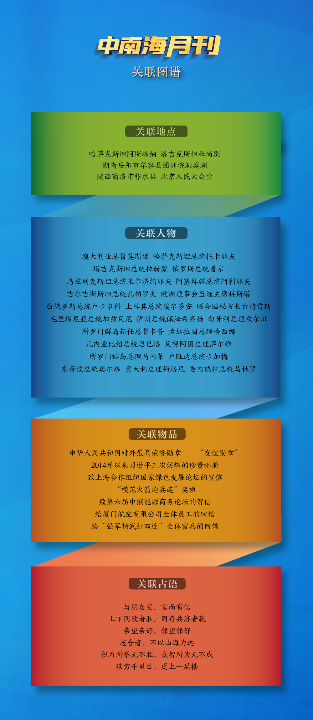 观察分析央视网“I学习”数据库生成的7月关联图谱,有元首外交的忙碌脚步,有攻坚克难的坚定决心,有跨越山海的温暖互动。 本月,多个关联地点见证习近平总书记“时时放心不下”的人民情怀。 当湖南岳阳市华容县团洲垸洞庭湖一线堤防发生决口的消息传来,总书记关心灾情变化和救灾进展,叮嘱要及时转移并妥善安置受威胁地区群众,全力开展抢险救援工作,切实保护好人民群众生命财产安全。陕西商洛市柞水县一高速公路桥梁因山洪暴发发生垮塌,总书记获悉相关情况后立即作出重要指示,要求千方百计搜救失联人员,最大限度减少人员伤亡。 7月25日,习近平总书记主持中央政治局常务委员会会议。会议专门研究部署防汛抗洪救灾工作,强调要始终把保障人民生命安全放在第一位,进一步完善监测手段,提高预警精准度,强化预警和应急响应联动。 本月关联物品里,有两封贺信均以“绿色”为底。 在致上海合作组织国家绿色发展论坛的贺信中,习主席提出中方愿同各方一道,“加强团结协作,推动绿色发展”。在致第六届中俄能源商务论坛的贺信中,习主席表示中方愿同俄方一道,为推动全球能源产业更加强劲、绿色、健康发展贡献力量……绿色,不仅切实成为进一步全面深化改革的鲜明底色,也奠定了人类命运共同体的生态底蕴。 见字如面,尺素传情。 在厦门航空有限公司成立40周年之际,厦航全体员工收到一封落款为习近平的回信。回信中,总书记深情勉励:“希望你们弘扬优良传统,坚持改革创新,增强核心竞争力,筑牢安全底线,在服务经济社会发展、促进两岸交流合作上积极发挥作用,为推动民航业高质量发展、建设交通强国贡献更多力量。” 习近平在厦门工作时,为处于初创阶段的厦航协调解决了飞机租赁、人才引进、资金短缺等多个难题。40年来,在习近平的关心下,当年白手起家的厦航已化蛹成蝶,成为厦门经济特区对外开放的一张亮丽名片。 登居庸关长城,访故宫博物院,骑行穿越北京中轴线……7月初,美国青少年“青春同行”交流团来华访问。 美国青少年“青春同行”交流团是落实习近平主席提出的“未来五年邀请五万名美国青少年来华交流学习”倡议的重要项目之一。“感知中国、体会中国、了解中国”,他们与中国小伙伴一路同行,多维度体验中国的古老文明与现代化发展。 习主席寄望他们此行通过与中国青少年交流互动,“在两国人民之间架起更多相知相亲的桥梁,为增进中美两国人民友谊作出贡献”。 今年是中意建立全面战略伙伴关系20周年和马可·波罗逝世700周年。在会见来华访问的意大利总理梅洛尼时,习近平指出,中意两国要秉持和弘扬丝路精神,从历史维度、战略高度和长远角度看待和发展双边关系,推动中意关系行稳致远。在经济全球化时代,唯有坚持全球产业链供应链开放合作,才会带来共赢发展。中国坚持走和平发展道路,从不追求霸权,愿同各国分享发展机遇。 ………… 行天下大道,创美好未来。在生气蓬勃的盛夏,改革开放扎实推进,外交舞台自信自强,世界看到了一个更加欣欣向荣、开放包容的中国。 |