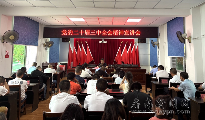 今日屏南消息(张宜铭)为深入学习宣传贯彻党的二十届三中全会精神,推动全会精神在基层落地生根,8月16日下午,县人大常委会党组书记、主任陆泽干深入棠口镇宣讲党的二十届三中全会精神,会议由镇党委书记陈雄主持,在家领导班子、全镇在编干部、各村党支部书记聆听宣讲。 在宣讲会上,陆泽干紧紧围绕习近平总书记在全会上的重要讲话和《决定》精神,从全会的重要意义、深入学习领会习近平总书记在党的二十届三中全会上的重要讲话精神、全面准确理解《决定》提出的进一步全面深化改革重大举措等方面作了系统讲解和深入阐释。宣讲主题鲜明、内涵丰富、重点突出,为党员干部深刻领会和准确把握全会精神提供了强有力的指导与帮助。 陆泽干指出,学习好、宣传好、贯彻好党的二十届三中全会精神是当前和今后一个时期的重大政治任务,全体党员干部要在全面学习、全面把握、全面落实党的二十届三中全会精神上下功夫,坚持把学习成果转化为攻坚克难、干事创业的实际成效。 陆泽干强调,要坚持学深悟透,准确把握全会精神实质。全体党员干部要以此次宣讲为契机,深入学习领会贯彻党的二十届三中全会精神,坚持原原本本学、反反复复学,深刻领会党的二十届三中全会的精神实质和丰富内涵。要做好学用结合,把握机遇推动高质量发展。坚持将党的二十届三中全会精神贯穿到工作的全过程,立足棠口镇自身资源禀赋,谋划产业布局,大力发展高山农业、绿色工业、文旅产业,推动一二三产业融合发展,助推棠口高质量发展不断取得新进展。要抓好宣传宣讲,推动全会精神全覆盖。领导干部要带头抓好宣传宣讲,镇村两级干部要用通俗易懂的语言、群众喜闻乐见的方式,把大会精神传达到每一名普通群众,确保家喻户晓、人人皆知。 |