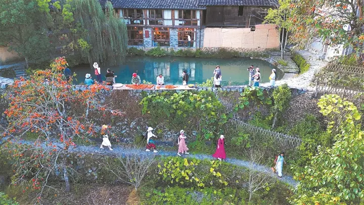 | 蜿蜒雨廊、错落老宅、叠石流水、环抱绿树,村民与游客穿梭其间……初秋,漫步在屏南县熙岭乡四坪村,一幅秀美灵动的乡村画卷映入眼帘。  四坪村位于屏南县南部、九峰山山下,是福建省级历史文化名村和传统村落,至今已有七八百年历史。20世纪八十年代,四坪村人口曾达到700多人。而后,随着大量村民外出务工、经商,空置的老房子经风雨侵蚀,东倒西歪,萧条至极,村庄日渐冷落。 如今的四坪村,兴起了啤酒屋、音乐酒吧、咖啡屋、民宿等旅游新业态,吸引了来自全国各地的艺术家和年轻人来此打卡、定居、共建村庄,成为令人向往的“桃花源”。 “空心村”如何成为“网红村”?这源自四坪村因地制宜改革创新机制,探索出一条用文化创意助推乡村振兴的新路子。 “2016年的四坪村,全村仅十多人留守,且多是老人、孩子,村内荒草丛生,古屋破败不堪。再这样下去,我们就成了没有故乡的人了。”谈及村庄早前的情况,四坪村党支部书记、村委会主任潘家如不禁叹气。 近年来,随着屏南县文创工作的深入推进,也给四坪村带来了生机。2017年6月,熙岭乡在龙潭村召开文创现场会议,通过现场观摩、交流研讨,让四坪人燃起了“复兴古村”的梦想。 古村要“复活”,当务之急是要修缮古屋。农村房屋共有人多、产权复杂,若依照“新村民”与老村民直接进行房屋流转的传统模式,容易出现哄抬租金、权益纠纷等无序现象。  对此,四坪村积极探索建立中介式流转机制,全面推行“老屋认租15年或20年”模式,由村委会统一从祖居户中流转旧民居,承租方再与村委会对接,以此规范老屋租赁市场,化解可能产生的矛盾。 很快,四坪村吸引来了五湖四海的乡村造梦人。来自浙江温州的高蓉蓉,正是四坪首批“新村民”之一,初来时的场景,至今仍历历在目,“认租的古屋已经腐朽倒塌,只剩下裸露的石头地基。” 传统村落是不可多得的宝藏,古宅老屋租出去后,如何修缮,实现有效保护和活化利用?“乡村建设项目具有数量多、造价小、修建内容难以标准化的特点,若按照传统招投标流程实施,就容易出现项目建设前期准备时间长、工程间接费用占比大、村民参与度低、村庄风貌不统一等问题。”潘家如介绍道。 于是,“工料法”在这一背景下应运而生。即由村级组织自行购料、聘请工匠、组织当地古建筑修缮队伍投工投劳,并组建村级监察“三员”,对工程项目进行全程监督。这一做法,最大程度简化流程,节省了时间和资金,也让屏南几近失传的传统建筑技艺再度振兴。 机制的变革与创新,陆续引来“三农”专家温铁军教授团队、林正碌文创团队等专家团队驻村实施文创项目,成立屏南乡村振兴研究院,完成“四坪慢生活生态创意村规划设计”,并引入北京小毛驴市民农园、北京爱故乡文化发展中心、福建省天文学会、中央广播电视总台农业农村频道,构建“文创+农创+星创”产业布局,启动全国首个“云村民”计划,建成全国首个大食物馆、福建省首个乡村天文馆。 同时,越来越多的“新村民”也在四坪村安家,发展民宿、咖啡馆、书吧等新兴业态。四坪村也加大资金投入,加快古巷道修复、立面改造、道路硬化等公共基础建设,打造村口雨廊、亲水景观、平讲戏研习所等公共艺术空间,进一步焕发乡村生机。 人来了,村活了。如何把人留住,成为四坪村发展的新挑战。为此,四坪村给“新村民”颁发居住证,让他们有更多的认同感和归属感,并为“新村民”设置了村民副主任专岗,把“新村民”吸收到乡村振兴中来,促进“新老村民”融合发展,推动“新村民”参与乡村治理。 乡村的变化,同样唤回了在外打拼的老村民。2021年,长期在外经商的潘国老,返乡成立屏南爱故乡生态农业专业合作社,担任理事长,并组建“乡土·潮农”共创团队,开展生态堆肥试验,探索“农创+文创+星创”新业态,带动更多青年融入乡村的同时,推动乡村经济发展。 “村庄发展起来了,如何让村民从中受益,成为我们着重考虑的问题。”潘家如说。 2023年秋天,四坪火红的柿子挂满枝头,映衬着古村落的黄墙黛瓦,形成一道独特的风景线,成为热门旅游打卡地。旅游最高峰时该村单日车辆达8000辆次左右,游客3万人次以上,日均客流量超过国庆中秋长假。 柿子本是农村常见之物,为何四坪村的柿子突然“红”了?关键就在于观念出新。2023年,四坪村通过机制创新,做足特色文章,由村党支部牵头流转村内柿子树,通过保留柿子供观赏拍照、研发柿子文创产品等方式,推动柿子从“一产”变“多产”,延伸出“我在屏南有喜柿”等创意产业,打造旅游新“爆点”。 在此基础上,四坪村还投入30余万元对雨廊进行综合整修,对30余个雨廊摊位进行提档升级、免费对外招商,吸引一批老村民认领摊位,经营农副产品、饮品、果蔬、手工艺品等,有效拉动群众增收。 “在雨廊摊位上售卖农产品,不仅可以增加收入,还不耽误我打零工。旅游旺季的时候,一天可以卖300多元,很不错。”四坪村村民韦顺淑高兴地说。 机制创新、文创引领,从隐居山间的“空心村”到火热出圈的“网红村”,四坪村实现了华丽的“蝶变”,已成为许多游客追逐体验的“诗与远方”。2023年,村内常住人口从原来的10多人恢复到200多人,入住新村民37人,发展休闲农业和乡村旅游经营单位31家,接待游客约75万人次,旅游创收1500多万元,村集体经济收入53.16