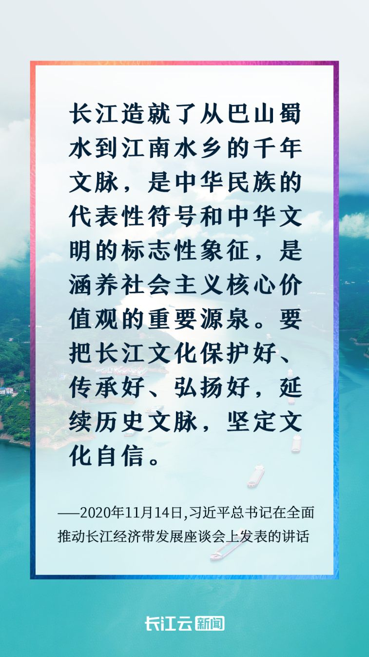 守护长江从来不是一个人的事,而是家住长江边每个人的事。湖北积极行动,与三个相邻省市分别签订跨省流域生态补偿协议;江西鄱阳湖畔,十万渔民毅然退捕上岸转产转业;安徽马鞍山,将每年的8月19日定为保护长江的专属节日……这一系列举措,不仅是对长江水脉的精心呵护,更是对长江文脉的深情延续。 长江之水万古奔流,千年文脉生生不息。党的十八大以来,习近平总书记高度重视长江文化保护传承弘扬,先后发表一系列重要讲话,作出一系列重要指示批示,强调“要把长江文化保护好、传承好、弘扬好,延续历史文脉,坚定文化自信”。 如今的长江两岸,每天都在编织着和谐共生文化共融的绚烂篇章。人民爱长江,护长江,深入挖掘与传承长江文化的深厚底蕴,让历史悠久的母亲河焕发出新的生机与活力。上游的巴渝文化、中游的荆楚文明、下游的吴越风韵……共饮一江水的“长江人”,赓续长江文脉,共创时代华章。