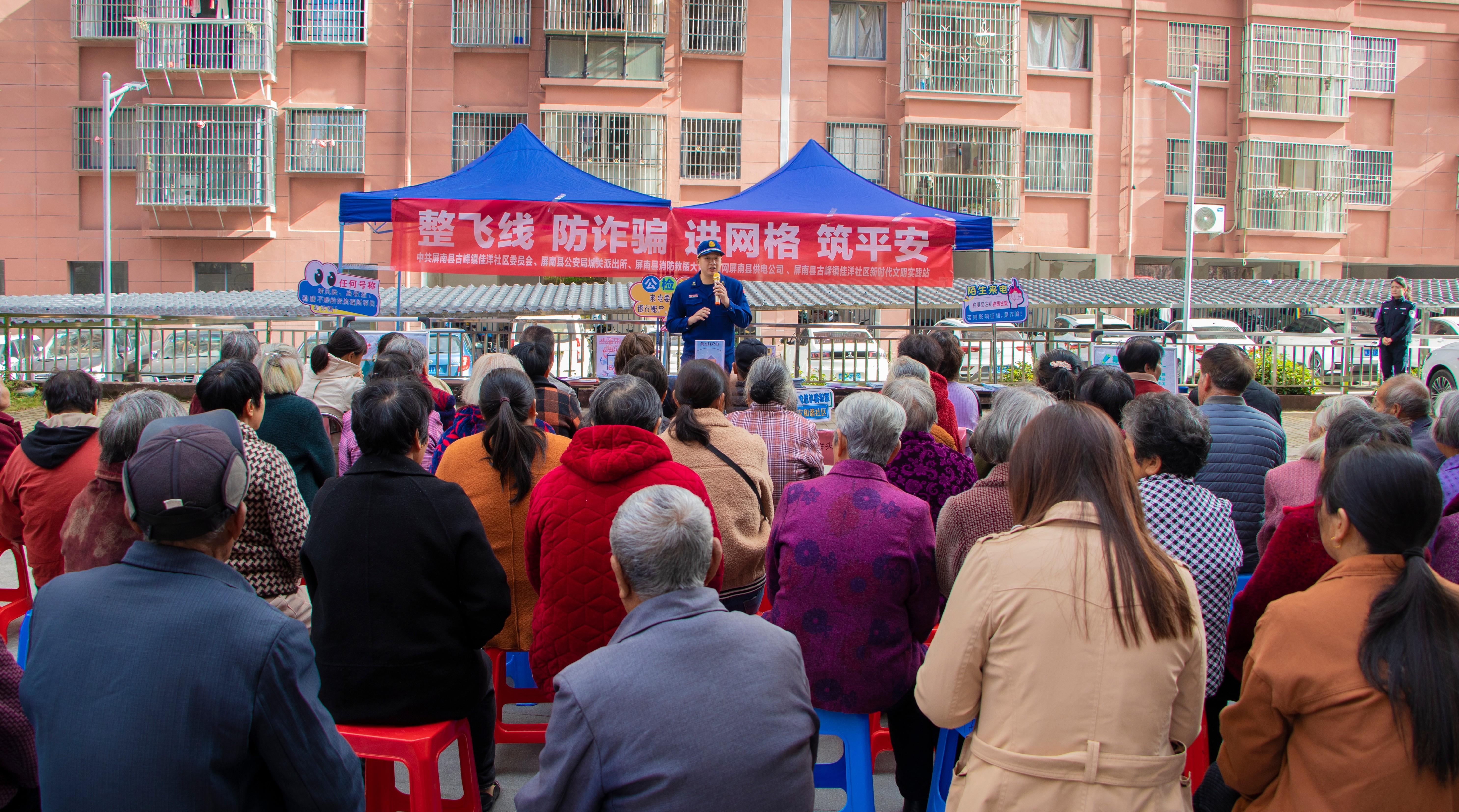 今日屏南消息(胡文敏)为进一步提升社区网格化服务管理水平,营造更加安全、和谐的居住环境,11月7日,屏南县古峰镇佳洋社区党委联合县公安局城关派出所、县消防救援大队、国网屏南县供电公司在锦丰小区二期广场开展“整飞线 防诈骗 进网格 筑平安”主题活动。 活动中,县公安局城关派出所民警结合实际案例,为居民详细讲解电话诈骗、网络诈骗、养老诈骗等常见诈骗手段及防范方法。县消防救援大队消防员为居民带来家庭消防安全知识宣讲,涵盖家庭火灾的预防、火灾发生时的应急处理以及正确使用消防设备等内容。 同时,由工作人员组成的先锋队深入社区各个角落,通过发放宣传资料、张贴警示海报等方式,向居民们详细讲解飞线充电的危害,引导居民杜绝飞线充电。 |