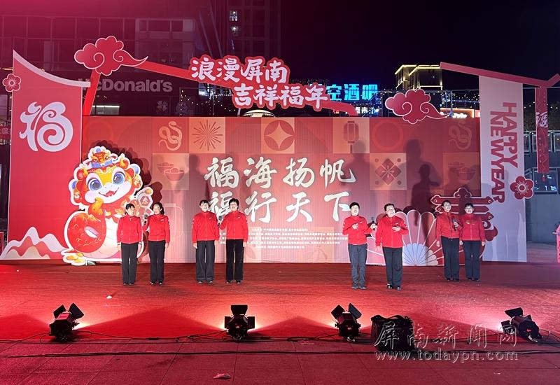 2月4日晚,屏南县中心广场异常热闹,“唱响屏山红歌”汇演在此举行,引来众多群众驻足观看。
