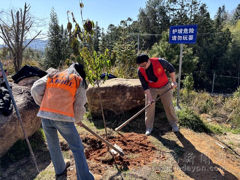 活动现场,人声鼎沸,参加活动的青年干部和学生们一起,热情洋溢、干劲十足。带着铁锹、水桶等工具,两三人一组,相互协作,配合默契,扶苗、铲土、填坑、浇水,每一个细节都井然有序,现场一片热火朝天的劳动景象。