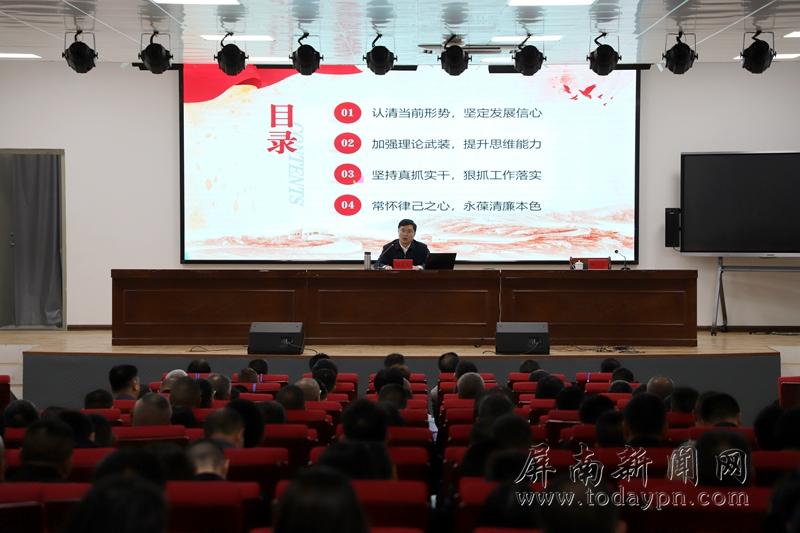 今日屏南消息(张声平)4月17日,屏南县委党校2025年春季学期主体班开班。县委书记周春海出席开班仪式,并以“干字当头、奋勇争先,争做宜居宜业宜游独具魅力和美屏南建设者”为题讲授专题党课。县委副书记、县长柳岳主持。 周春海强调,要认清当前形势,坚定发展信心,越是外部环境复杂的时候,越要旗帜鲜明讲政治,相信组织、依靠组织,主动融入和服务发展大局,紧紧围绕“4321”发展思路,把屏南工作做好,事业发展好,努力以一域之光为全局添彩,以实际行动坚定拥护“两个确立”、坚决做到“两个维护”。加强理论武装,提升思维能力,以持之以恒的学习态度不断充实自我,深学党的创新理论,持续拓宽知识维度,注重在复杂多变的环境中提升各种思维能力,切实增强干事创业的本领。坚持真抓实干,狠抓工作落实,发挥担当负责的“干劲”、奋勇争先的“闯劲”、动真碰硬的“狠劲”、善作善成的“巧劲”、久久为功的“韧劲”,以“时时放心不下”的责任感和“事事心中有底”的行动力抓好各项工作,因地制宜将“蓝图”转化成“路线图”、细化为“任务书”,一抓到底,抓出成效。常怀律己之心,永葆清廉本色,严守纪律规矩,正确对待权力,切实改进作风,坚决做到心中有戒、公正用权、风清气正,扎实开展学习教育,一体推进学查改,以优良作风凝心聚力、干事创业。 党课最后,周春海寄语全体与会人员,担当是使命、更是本分;奋斗是常态、更是传承;廉洁是底线,更是底气。希望大家坚持以“功成不必在我”的境界和“功成必定有我”的担当,在实干中锤炼本领,在奉献中书写忠诚,共同绘就宜居宜业宜游独具魅力和美屏南新画卷。 在家县处级领导、各乡镇党政主要负责同志、县直各单位主要负责同志、县委党校2025年第一期科级干部进修班和中青年干部培训班全体学员、县委办公室支部全体党员参加开班式。 |