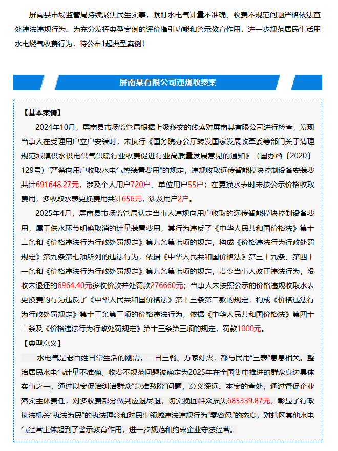 【以案促治】屏南县市场监管局推动整治居民水电气计量不准确、收费不规范问题