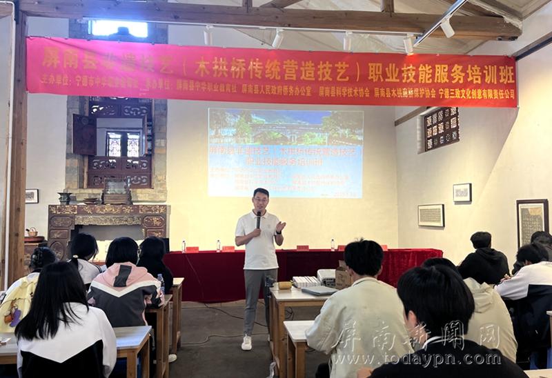 今日屏南消息(陈阿娜)为促进我县职业教育发展,推动传统技艺传承,提升木工从业人员及社会群众技能水平,拓宽就业增收渠道。5月13日,由宁德市职教社主办,屏南县人民政府侨务办公室、屏南县中华职业教育社、福建省宁德三致文化创意有限责任公司承办的非遗技艺(木拱桥传统营造技艺)职业技能培训班在“棠栖小镇”开班。市委统战部部务会成员、市中华职业教育社专职副主任陈言足,县委常委、统战部部长陈传旺出席开班仪式。 屏南县及周边地区的木工从业人员、手工艺人以及木工爱好者、侨界代表人士等80多人参加。 培训班邀请非遗传承人和资深木工师傅,从屏南木拱廊桥历史与结构解析、传统木工工具使用演示与练习、木拱构件制作(拱架、横梁)等方面讲解,通过理论授课+实践操作的方式,让学员熟练掌握传统木工工具的使用方法,学会制作木拱廊桥的关键构件及传统技艺文创产品的设计创作等。同时,还结合现代技术,了解 BIM 在木拱廊桥修复中的应用,共同交流探讨木拱廊桥在文旅融合背景下的创新利用方式。 参训学员纷纷表示,此次培训非常有意义,将非遗技艺的传播与人才培育结合起来,不仅弘扬传承了非遗文化,也激发了大家对传统技艺的兴趣与热情,让非遗技艺能够听得见、学得来、带得走,为广大群众提供实现灵活就业的新技能。 |