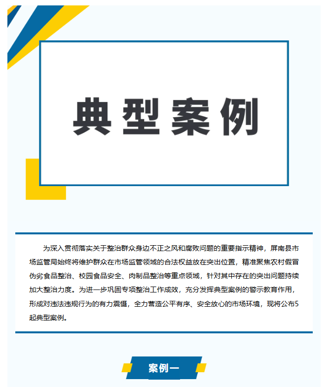 【典型案例】屏南县市场监管局公布5起市场监管领域群众身边不正之风和腐败问题集中整治典型案例