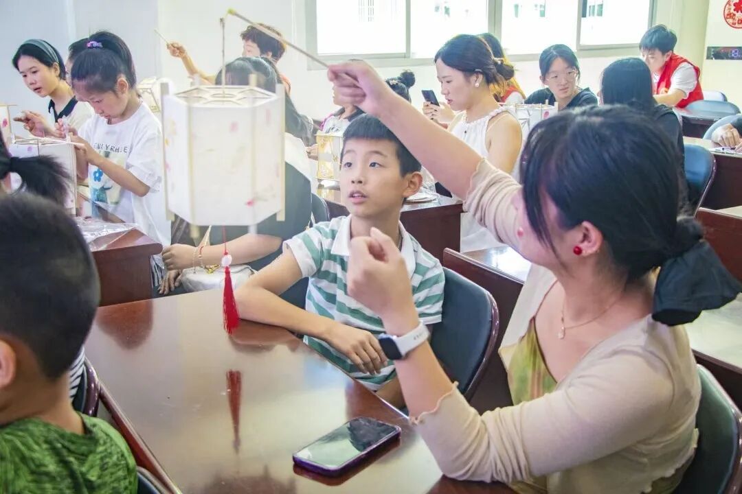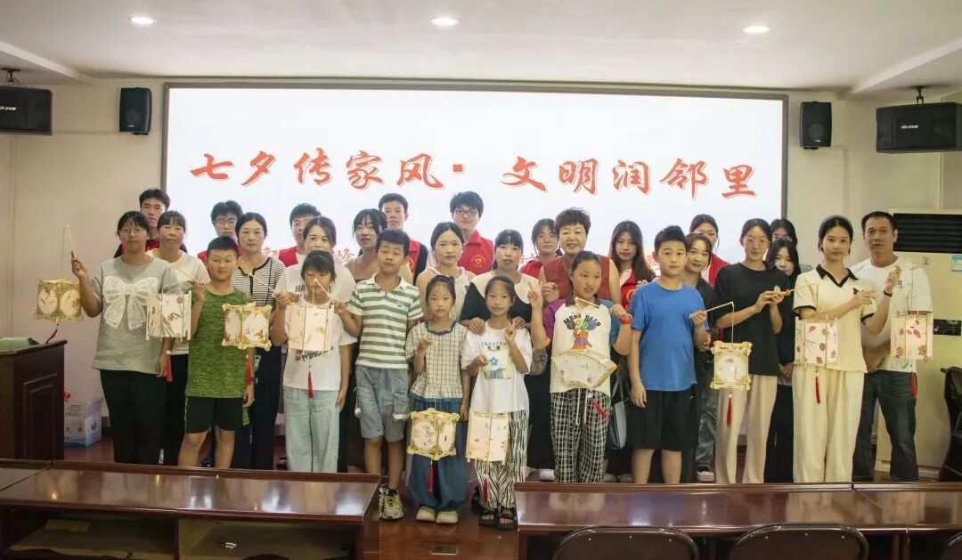 活动现场,志愿者用通俗易懂的语言介绍了七夕的历史背景、传统寓意、民俗特色以及传承优良家风的价值。随后,互动环节迅速点燃现场氛围。大家积极参与“抢椅子”、“两人三足”等互动游戏,在轻松欢乐的氛围里拉近了亲子距离,邻里间此起彼伏的加油声更让现场暖意融融。游戏结束后,“灯笼DIY”环节接力开启,亲子共同制作灯笼,过程中相互讨论、互帮互助,在动手实践里感受传统习俗的魅力。看着孩子兴奋地展示灯笼,吴女士笑着说:“今天的活动很有趣,既能让孩子了解七夕节的文化内涵,又能增进亲子互动,拉近邻里距离”。